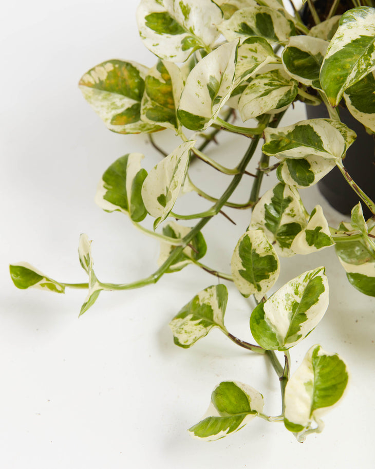 Cascading plants like the stunning Pearl and Jade Pothos can enhance vertical spaces when placed on higher shelves. Philodendron Cordatum is another great trailing plant that looks amazing in a hanging planter. Cascading greenery adds visual interest to living rooms, studies and home workspaces.
