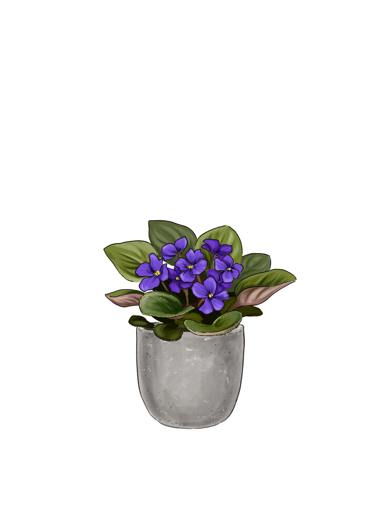 When receiving the plant, do not repot immediately but wait at least 6-12 months or until the spring. As African violets grow, the older leaves may be removed as newer ones form, leaving a bare stem closer to the soil. Remove your plant from their pot after adequately hydrating them. Remove as much root mass as the bare stem. Replant with fresh soil in the same pot but burying the bare stem, so the bottom leaves are near the soil line. Use an African violet potting mix with vermiculite and perlite, making up 1/3 to 1/2 of the mixture, so it is aerated to help with drainage. Using a terracotta or breathable pot with drainage holes will allow the air to circulate the root system and dry out more quickly. Ceramic pots are usable, too, with drainage holes. Water well and place a large, clear plastic bag over the planter to help create humidity. The roots will re-establish quicker. Check the moisture level each week to ensure they have adequate water. After six weeks, remove the bag and set them in bright to medium indirect light.