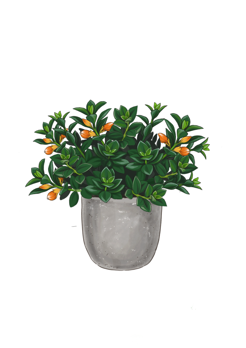 A colorful plant with a profusion of red-orange tubular flowers that have been kissed on the ends in yellow lipstick! Keep her hanging around in a basket or creeping up a trellis.