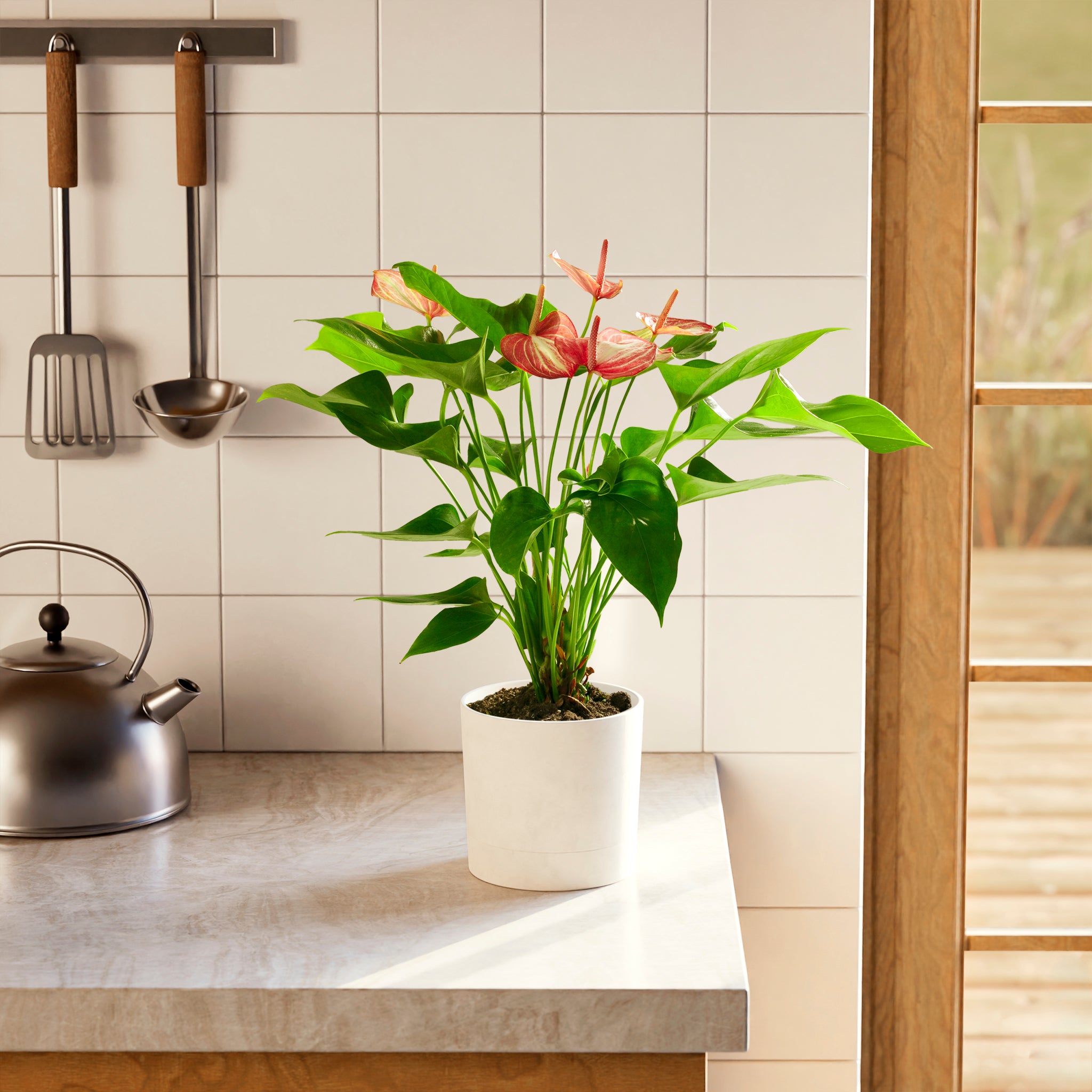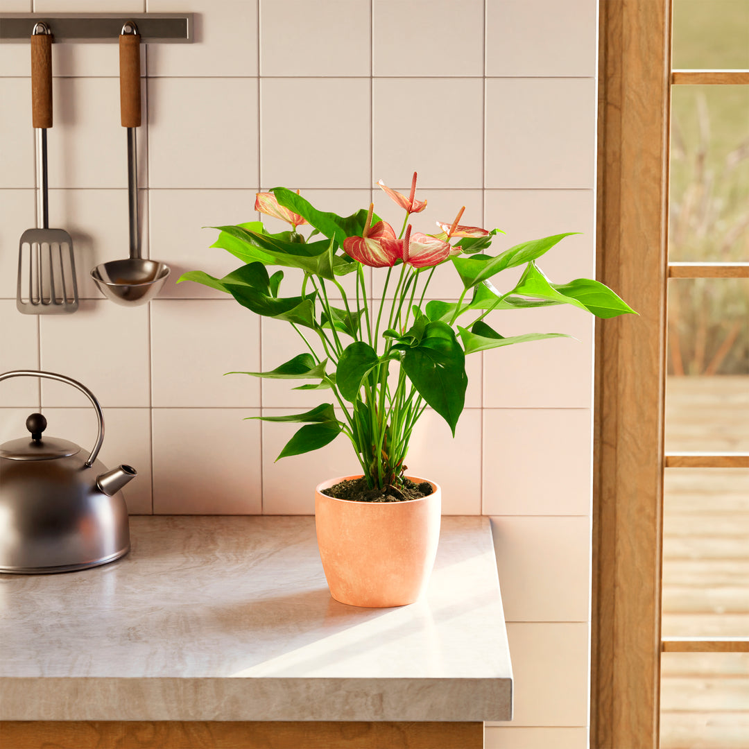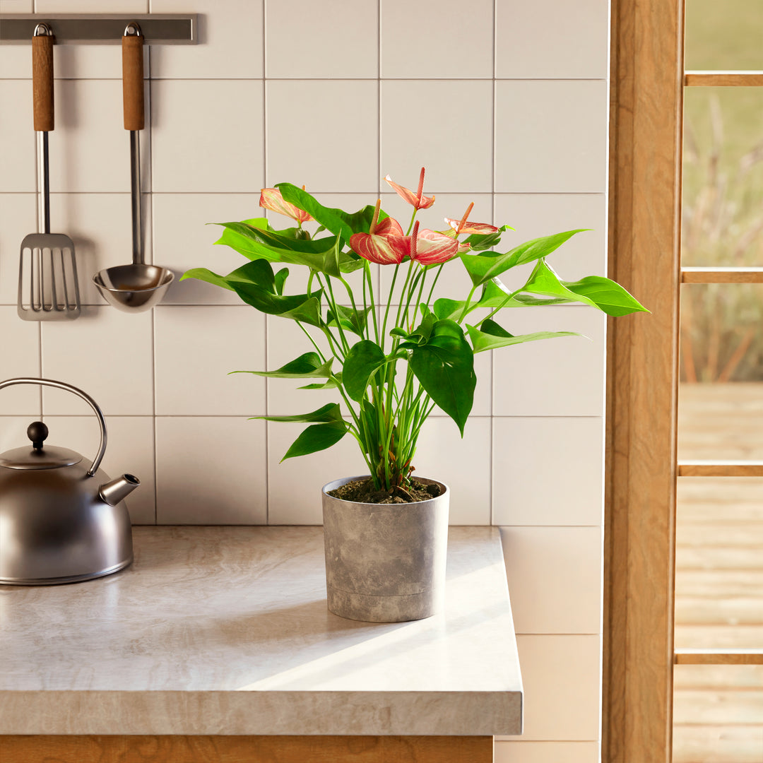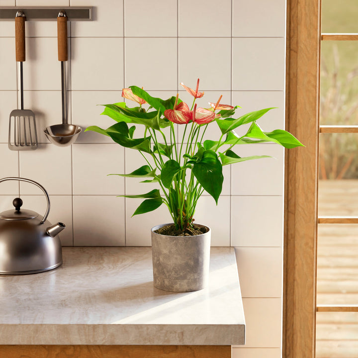 Combine your Anthurium Flamingo Livium with other tropical plants to create a lush atmosphere of greenery and relaxation in your home or office: