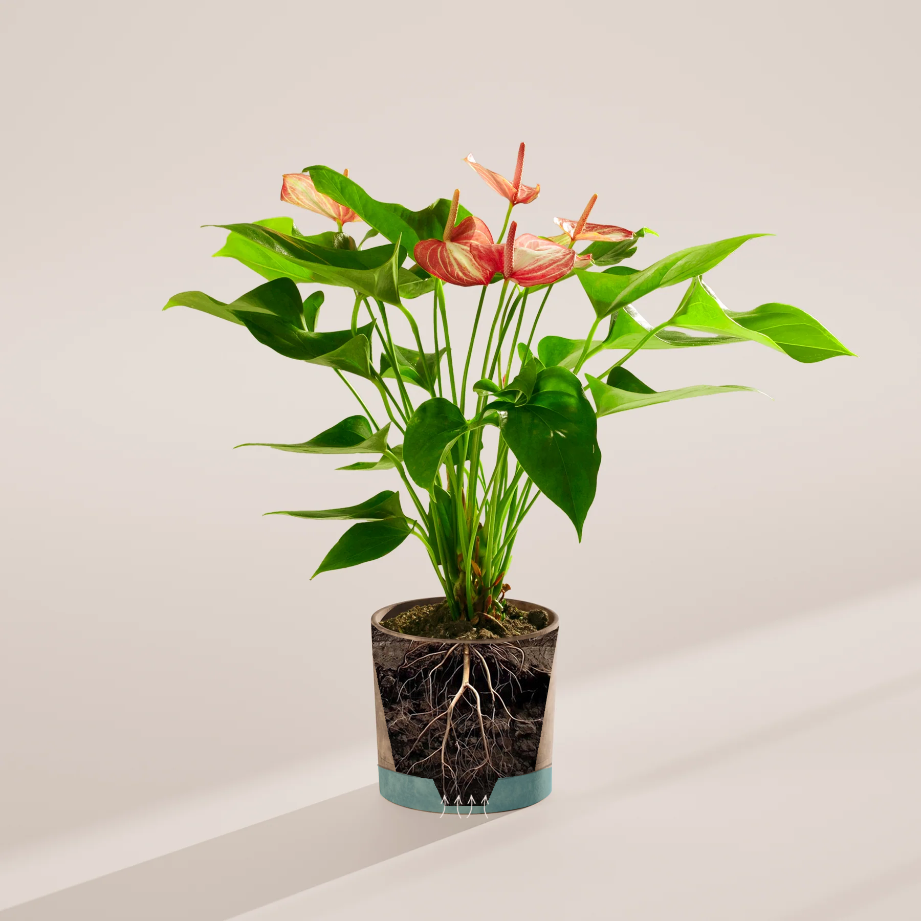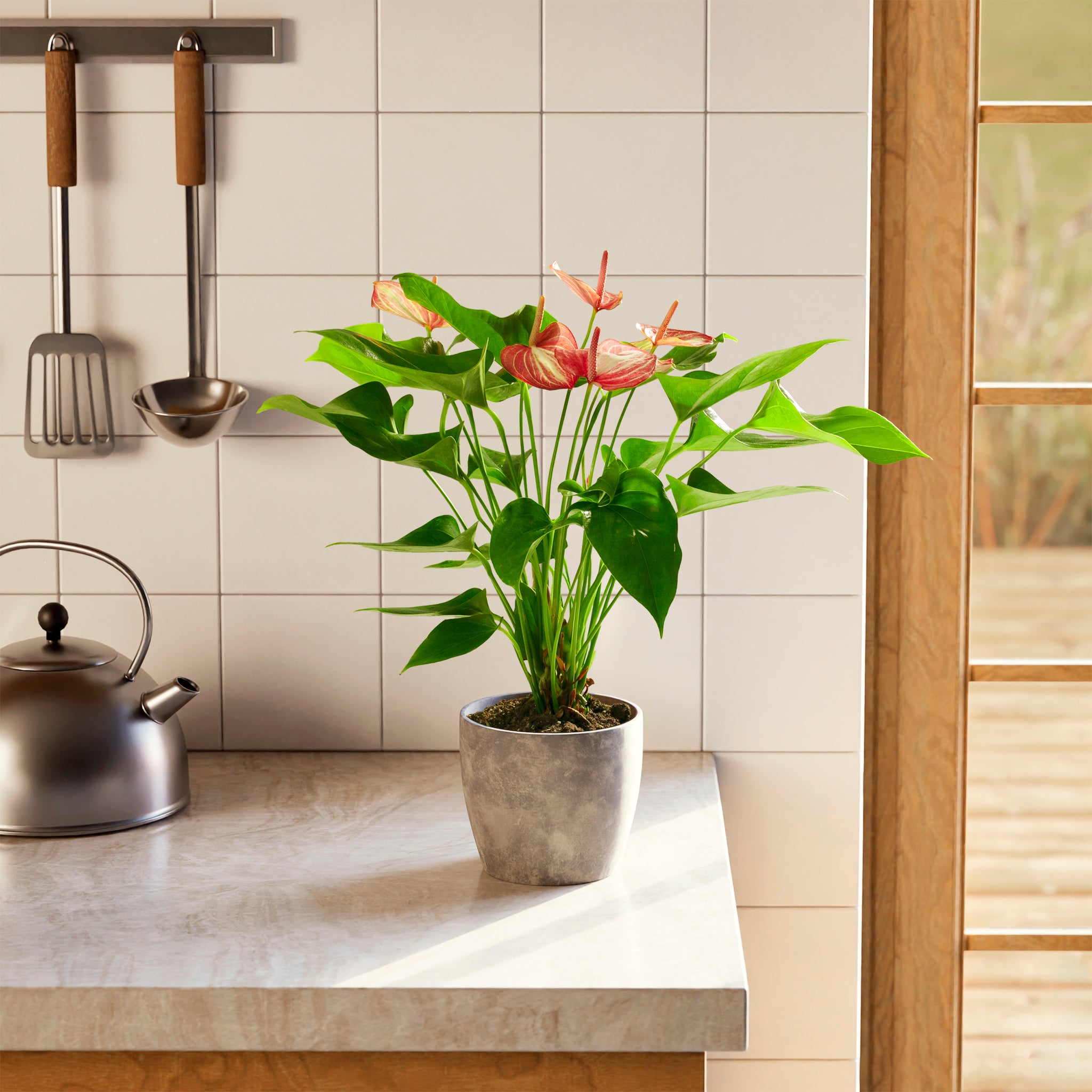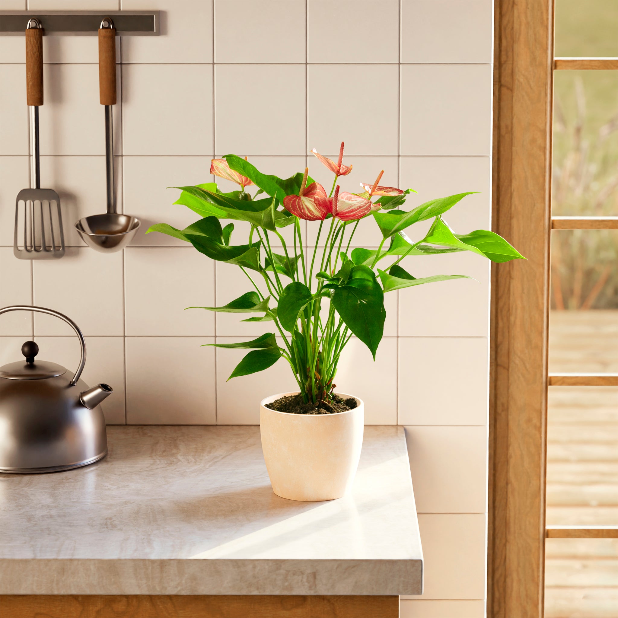 Combine your Anthurium Flamingo Livium with other tropical plants to create a lush atmosphere of greenery and relaxation in your home or office: