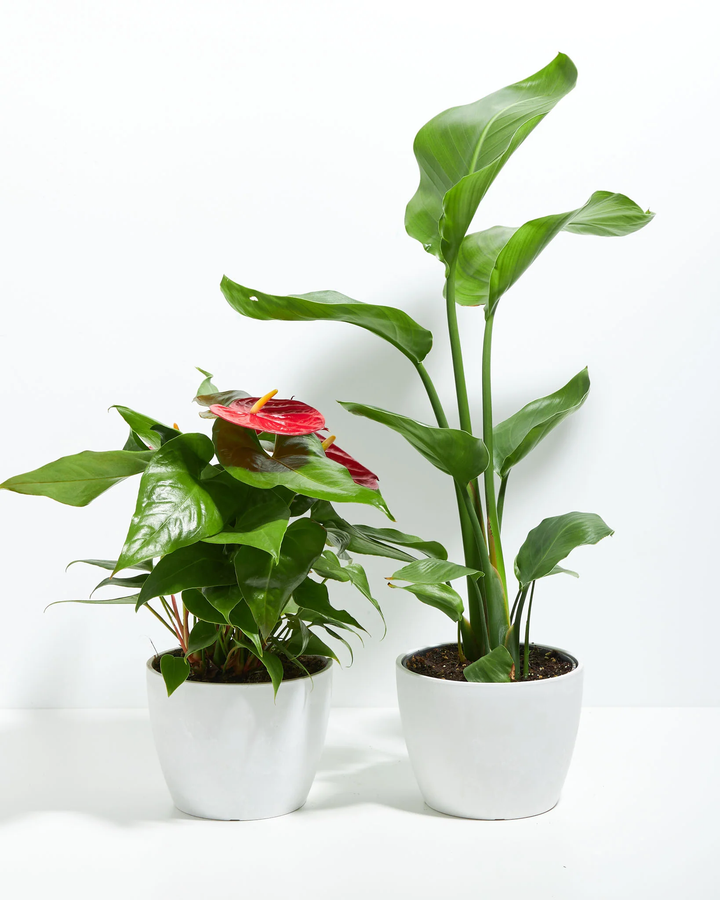 Flamingo Flowers are tropical, beautifully colored flowers. This year-round bloomer is a tropical treasure, instantly bringing vacation vibes to your home with its bold blooms. They change color through the year, ranging from vivid scarlet to pretty pink and rich purple. They can survive in low light, but medium to bright indirect sunlight will keep them happiest.