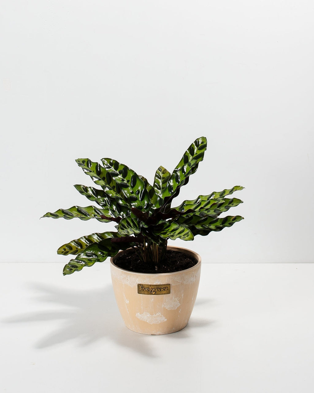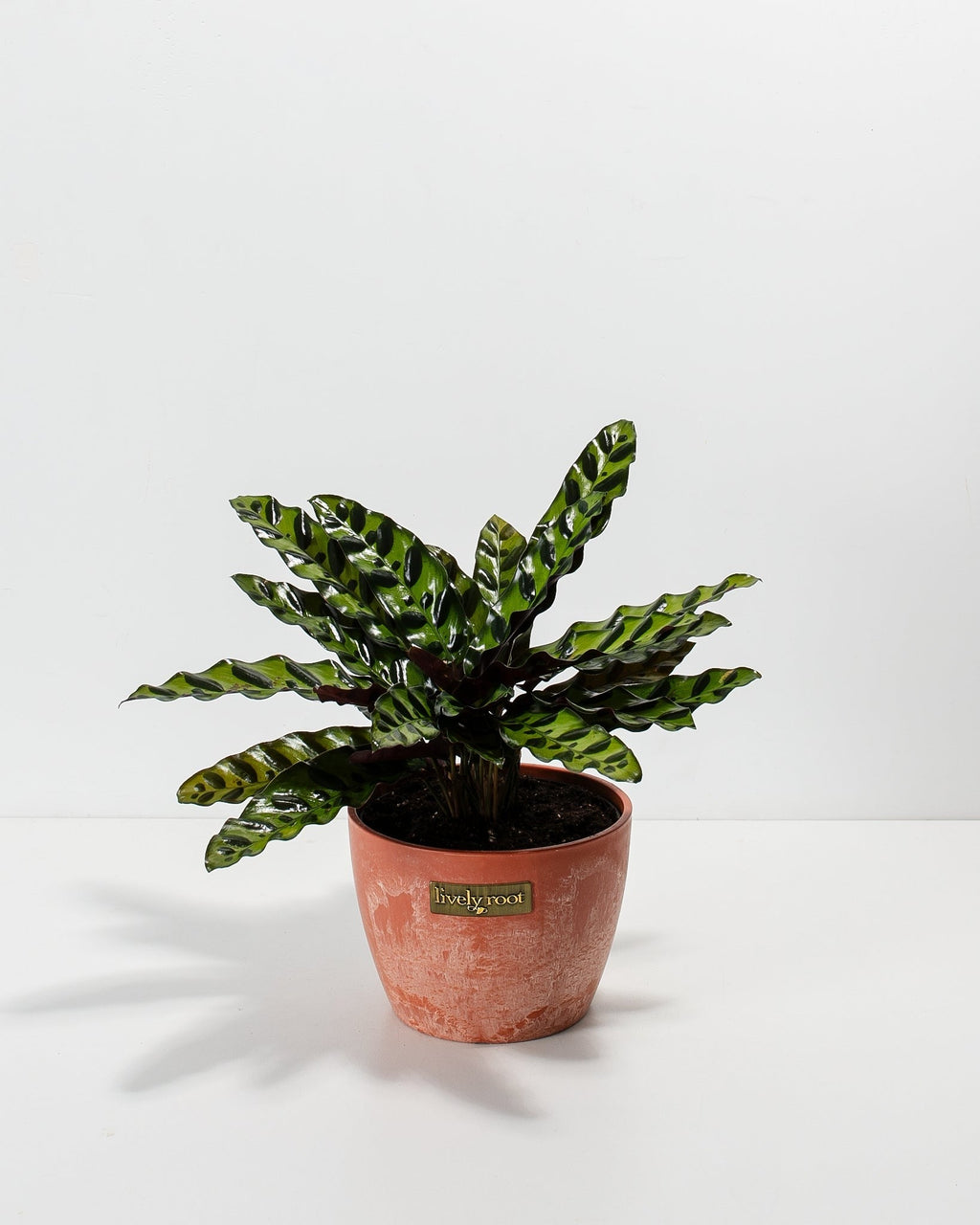 Enhance your indoor space with the rare beauty and air-purifying benefits of the Calathea Rattlesnake, available at Lively Root! Buy now to add a touch of tropical elegance to your home or office!