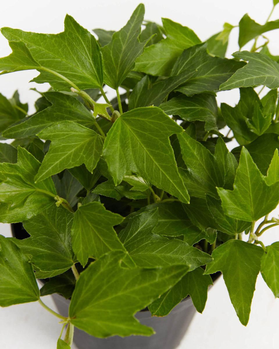 California ivy is a part of the ivy climbing plant family in many different climates. This ivy features green leaves, each with five rounded lobes, and the veins of each leaf are a lighter green color, and the stems occasionally have a reddish color. California Ivy produces small pink flowers in the springtime, and the summer produces really fun small red berries. This plant is great for new plant parents as they require low upkeep.  Because they can grow so rapidly, California ivies need to be fed at least once a month and require only minimal watering.