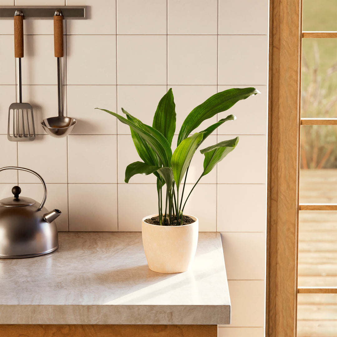 The Cast Iron Plant is not fussy and can adapt to various indoor conditions and humidity levels. However, it will appreciate a slightly humid environment, especially in winter when indoor air tends to be dry. Feed the plant with a balanced, water-soluble fertilizer every 2-3 months during the growing season (spring and summer).