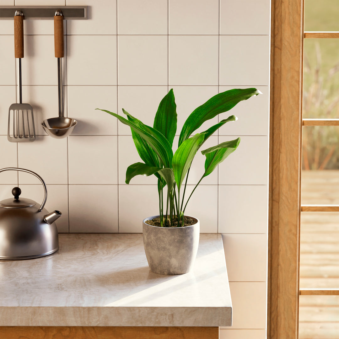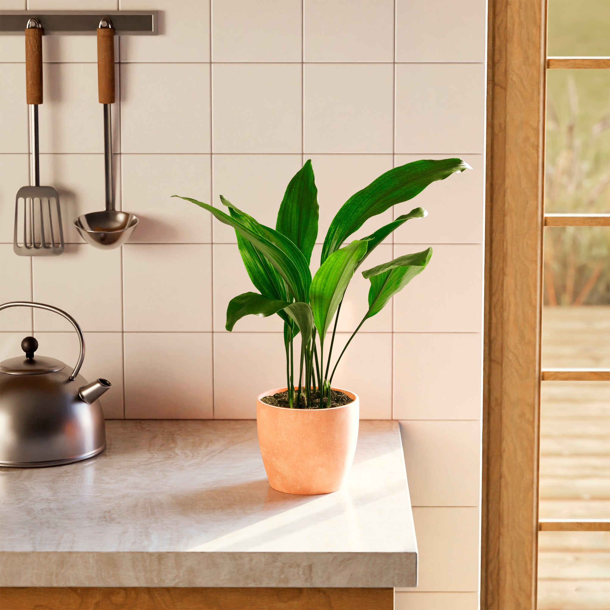The Cast Iron Plant is not fussy and can adapt to various indoor conditions and humidity levels. However, it will appreciate a slightly humid environment, especially in winter when indoor air tends to be dry. Feed the plant with a balanced, water-soluble fertilizer every 2-3 months during the growing season (spring and summer).