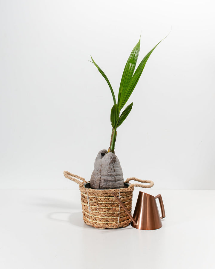 Cocos nucifera requires consistent and regular watering. Keep the soil moist but not soggy. This tropical palm loves high humidity, so you can mist your plant daily.