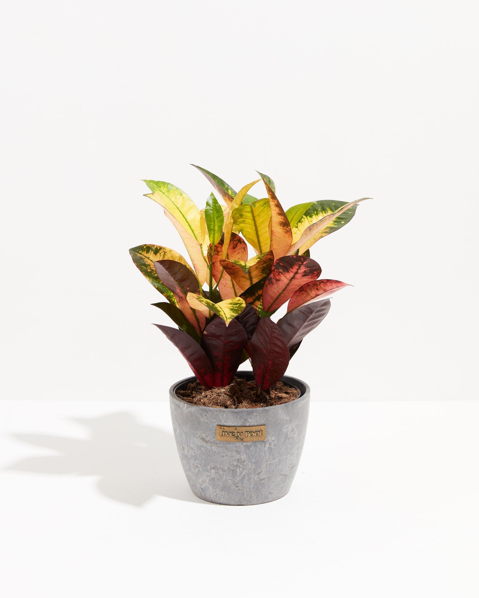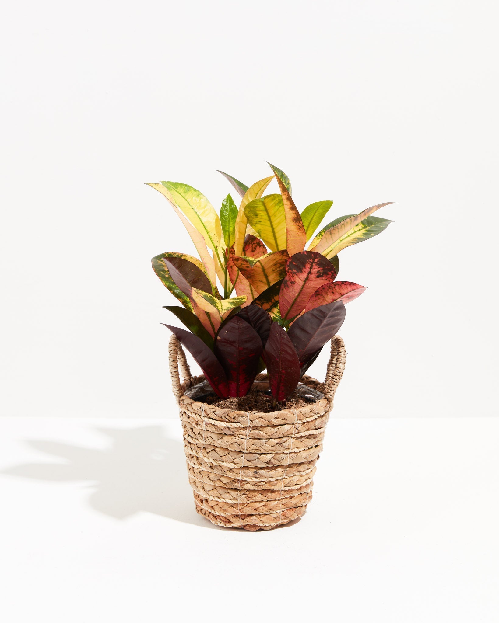 Give this Croton bright, indirect light to promote the intensity coloration of their leaves.