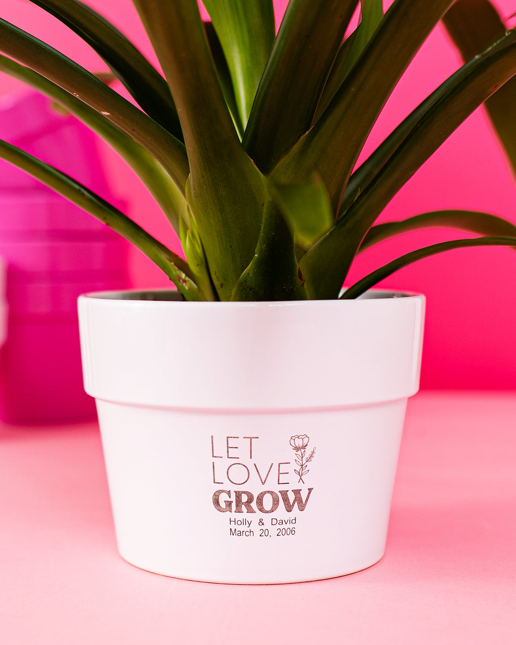 Making your gifts unique this year with these custom personalized flower and plant pots! Choose a template and add your custom text or dates!