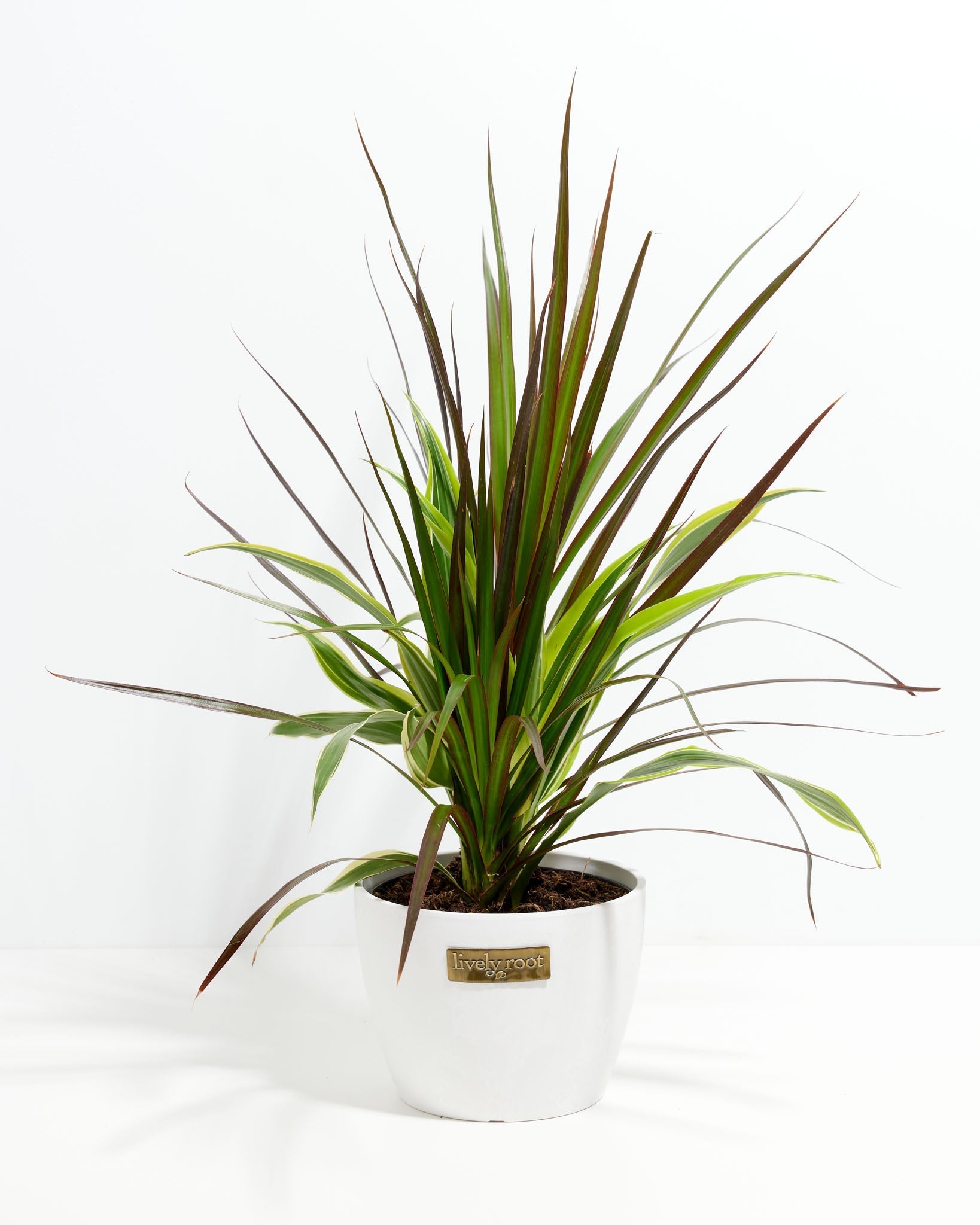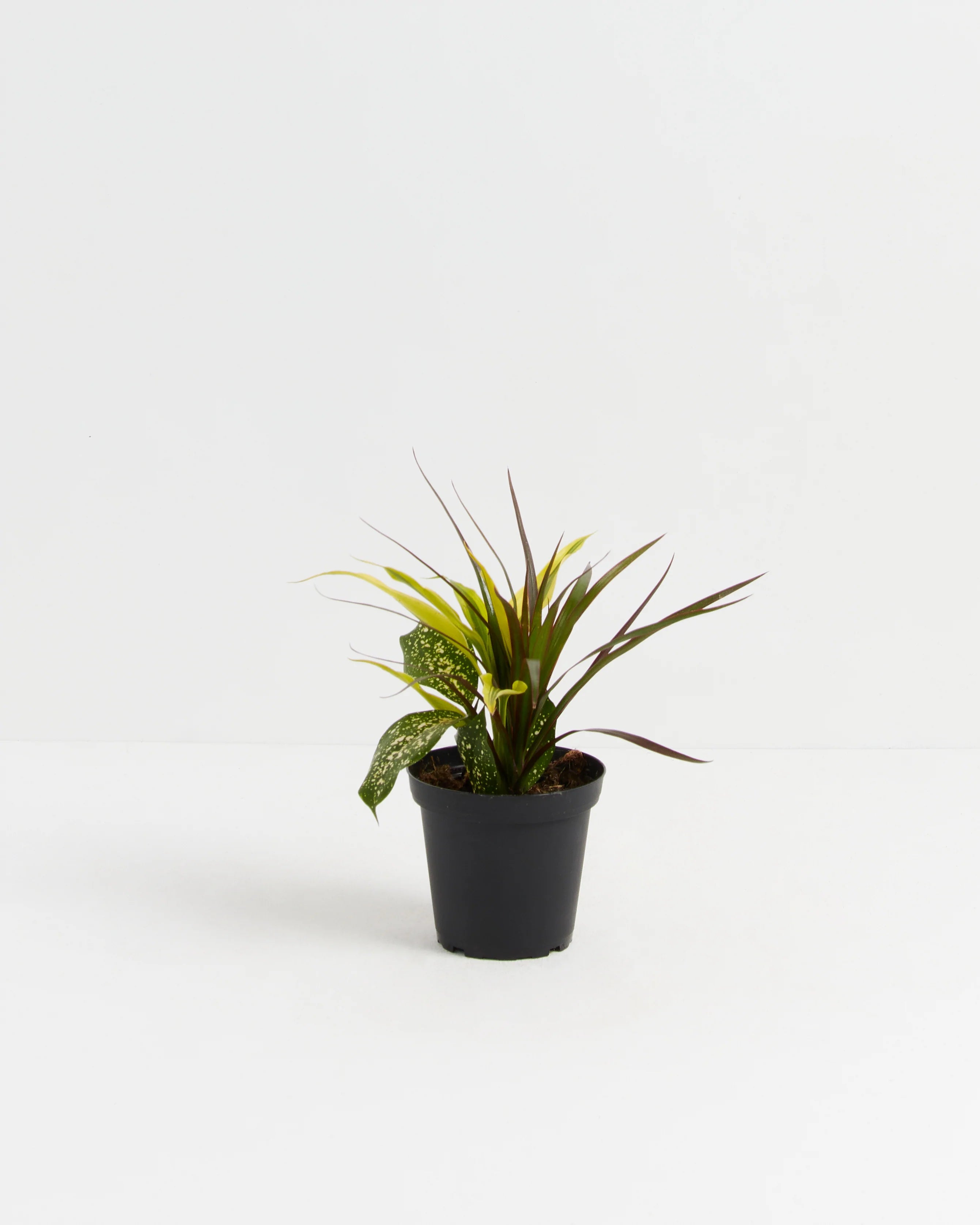 Our red-leaf Draecana collection features multiple types of bright and bold dragon plants all in one pot. They certainly make a statement With variegated yellow spots, vivid red stripes, rounded leaves, and spiky foliage. Best of all, they are easy to care for and purify the air.