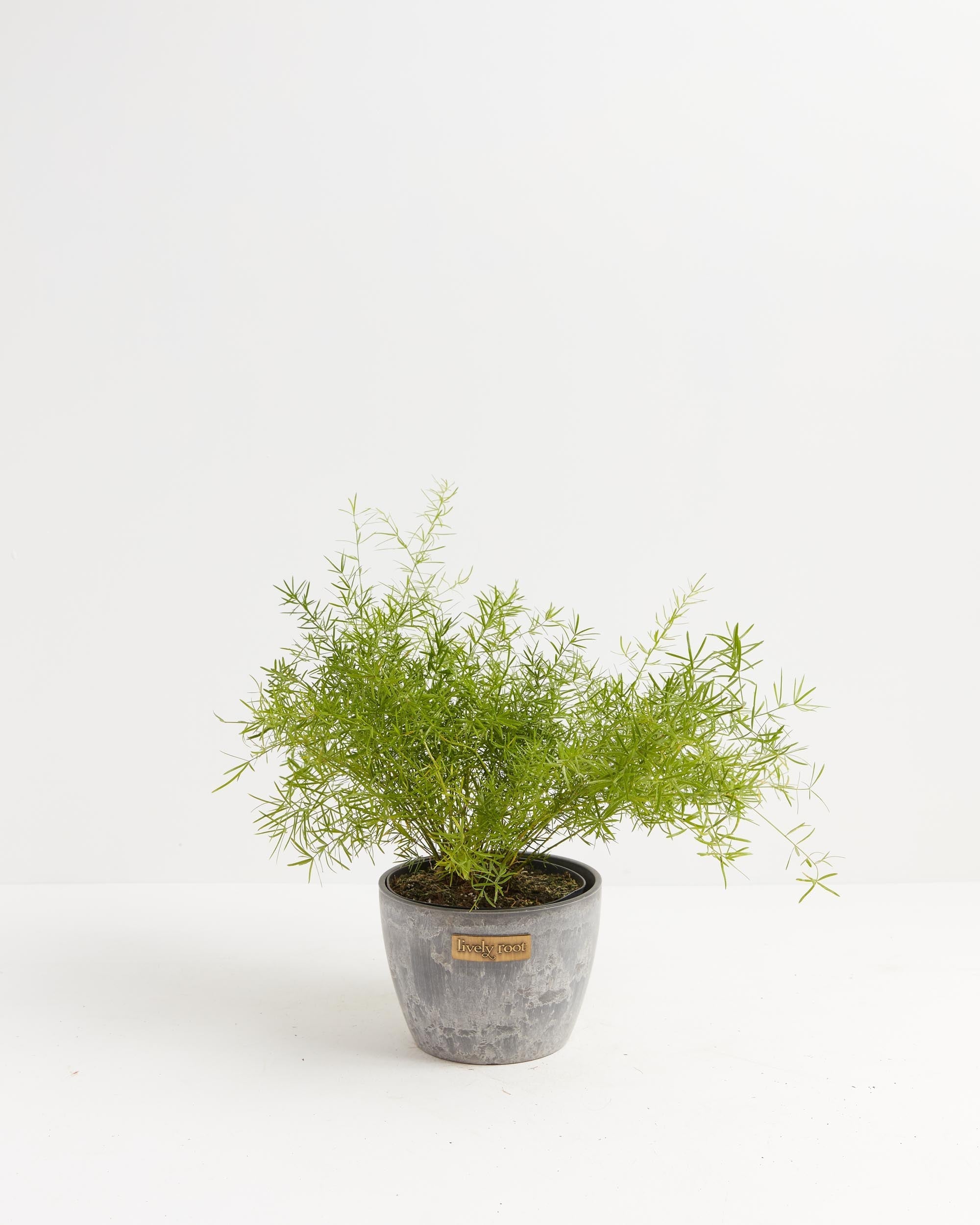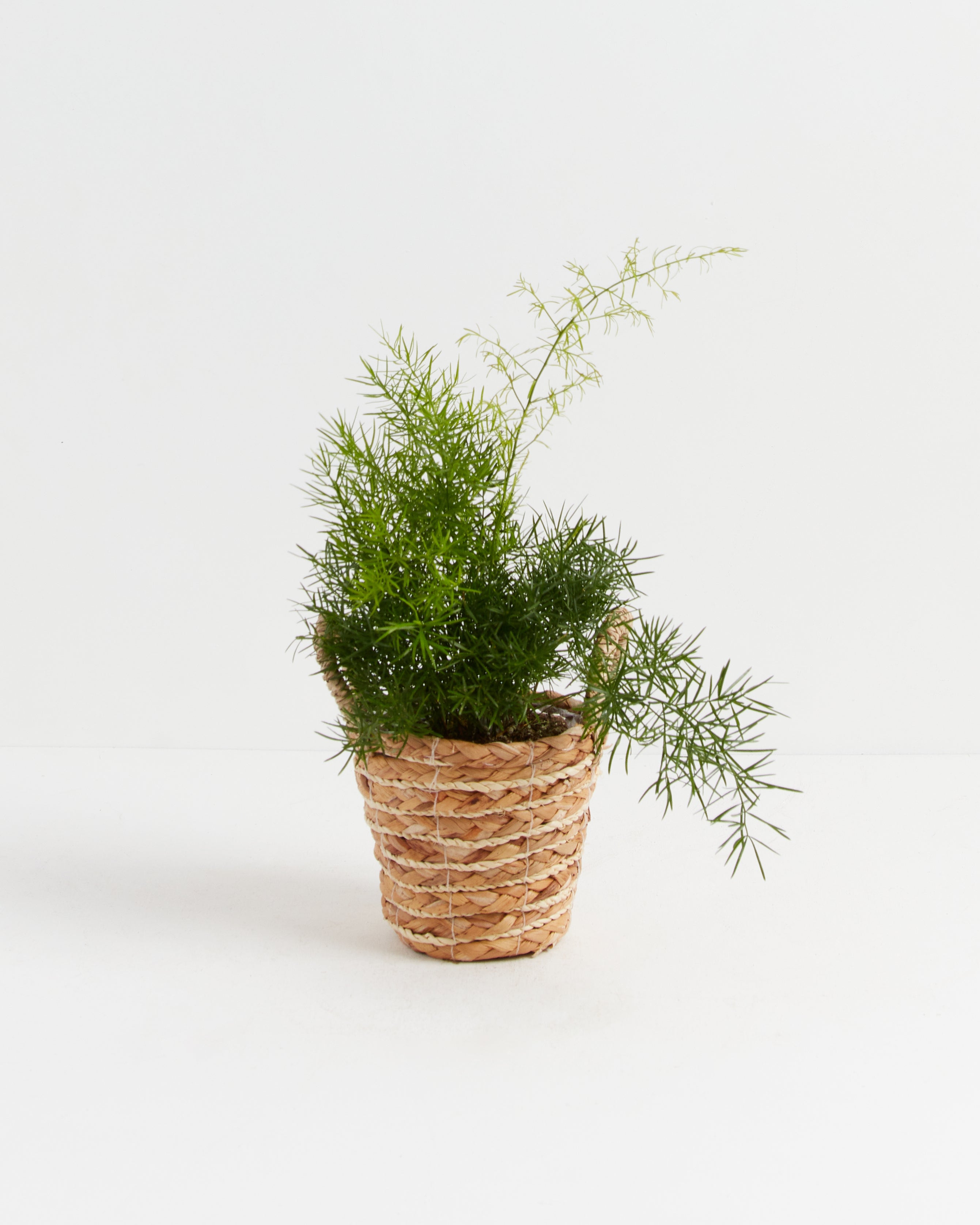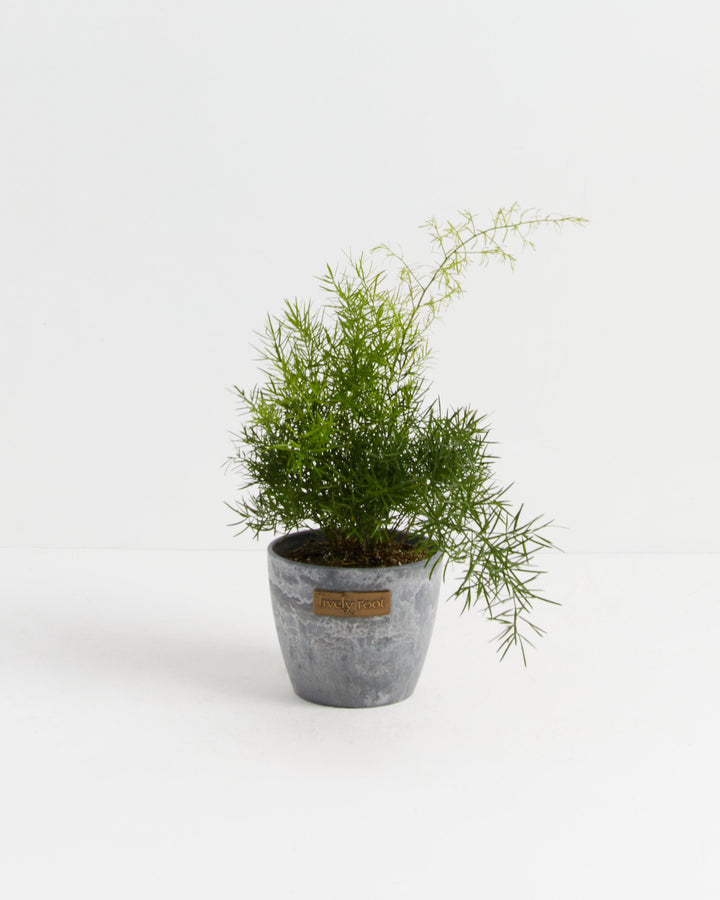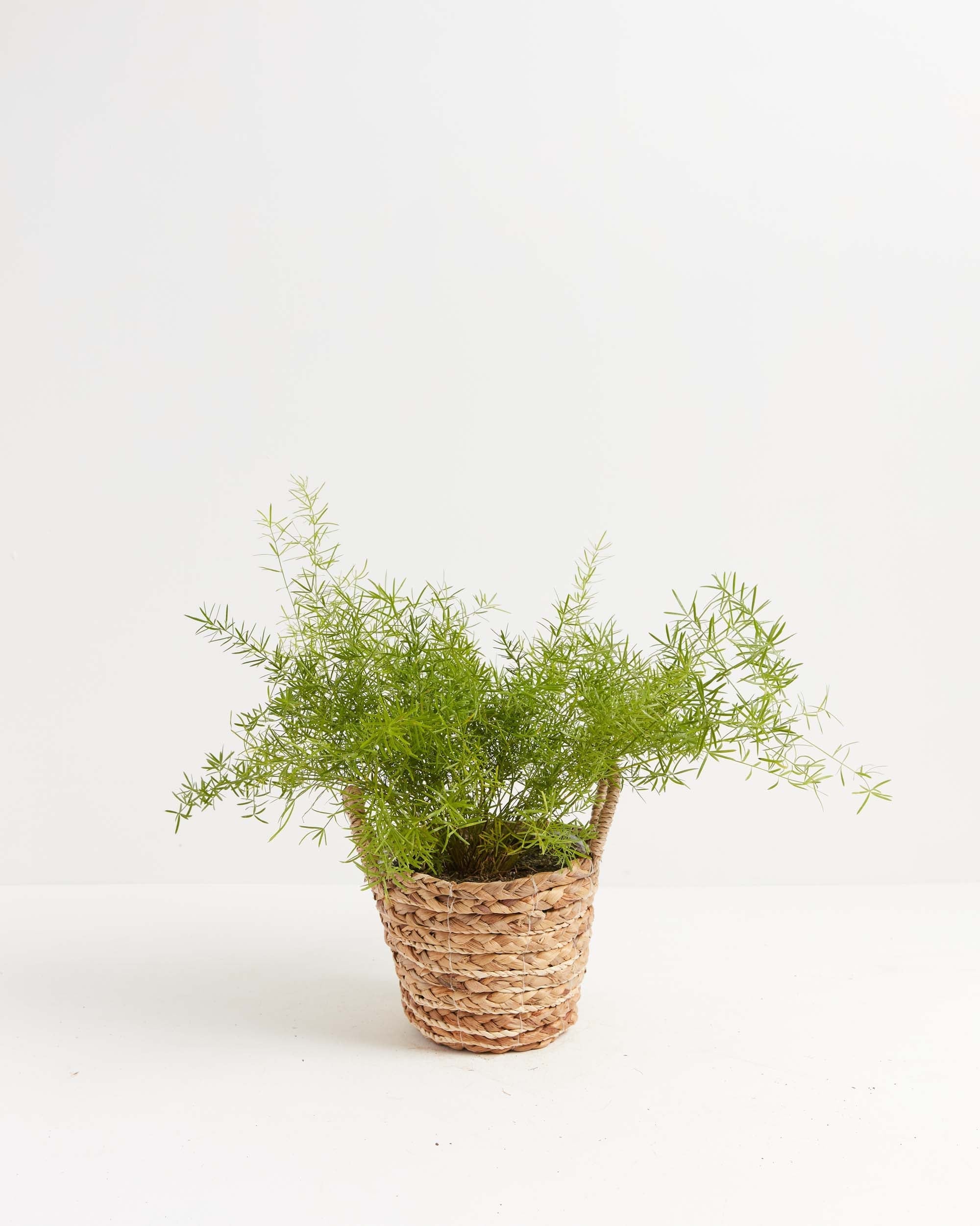 The Asparagus Densiflorus 'Sprengeri'' (Asparagus Fern) has arching fronds that resemble a bottle-brush. Their needle-like cladodes (segments of a stem) function like leaves—an elegant addition to your hanging basket or tabletop collection.