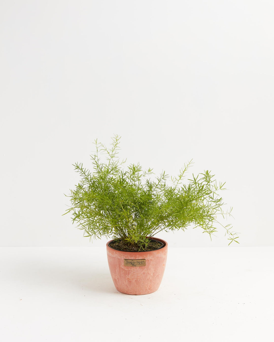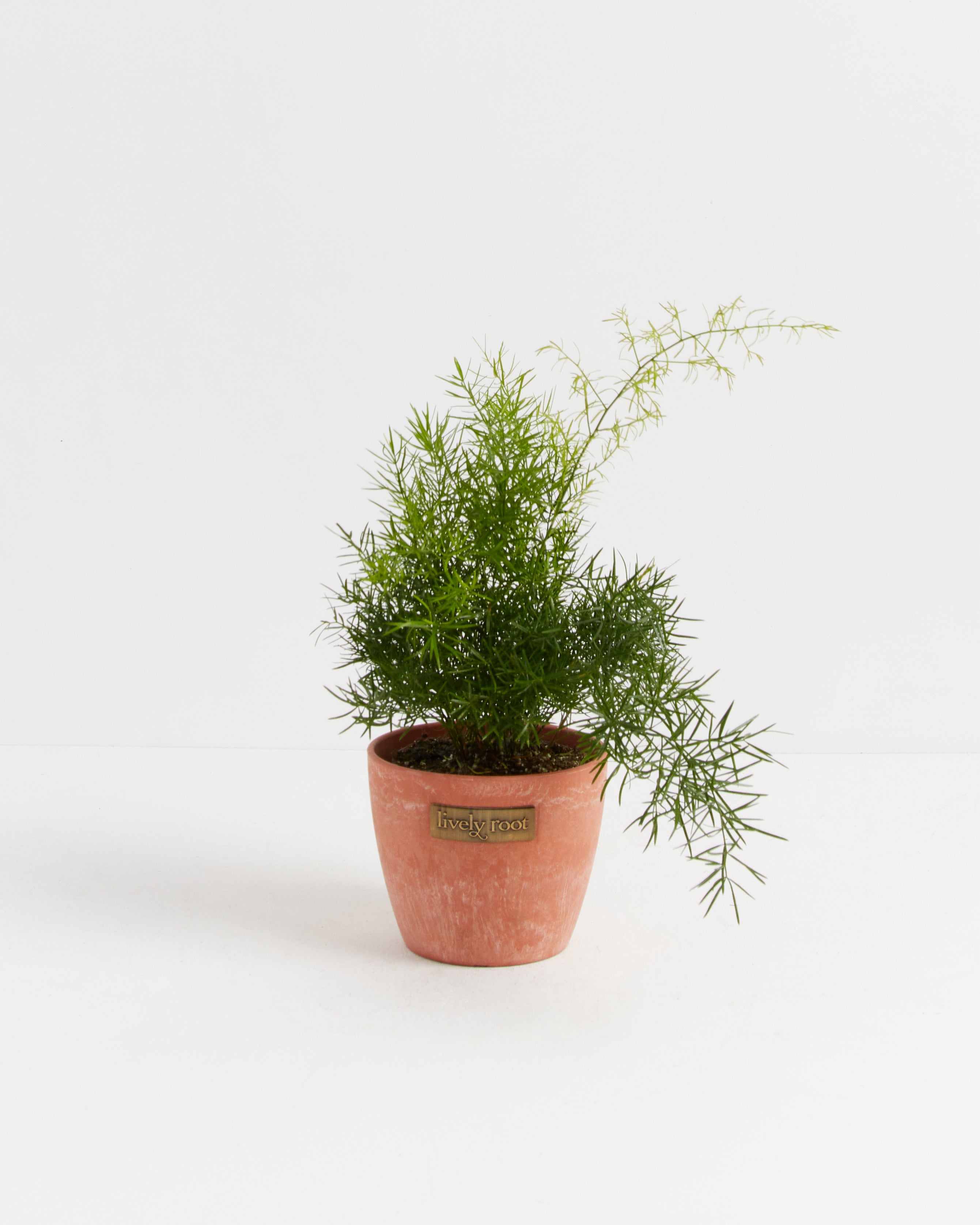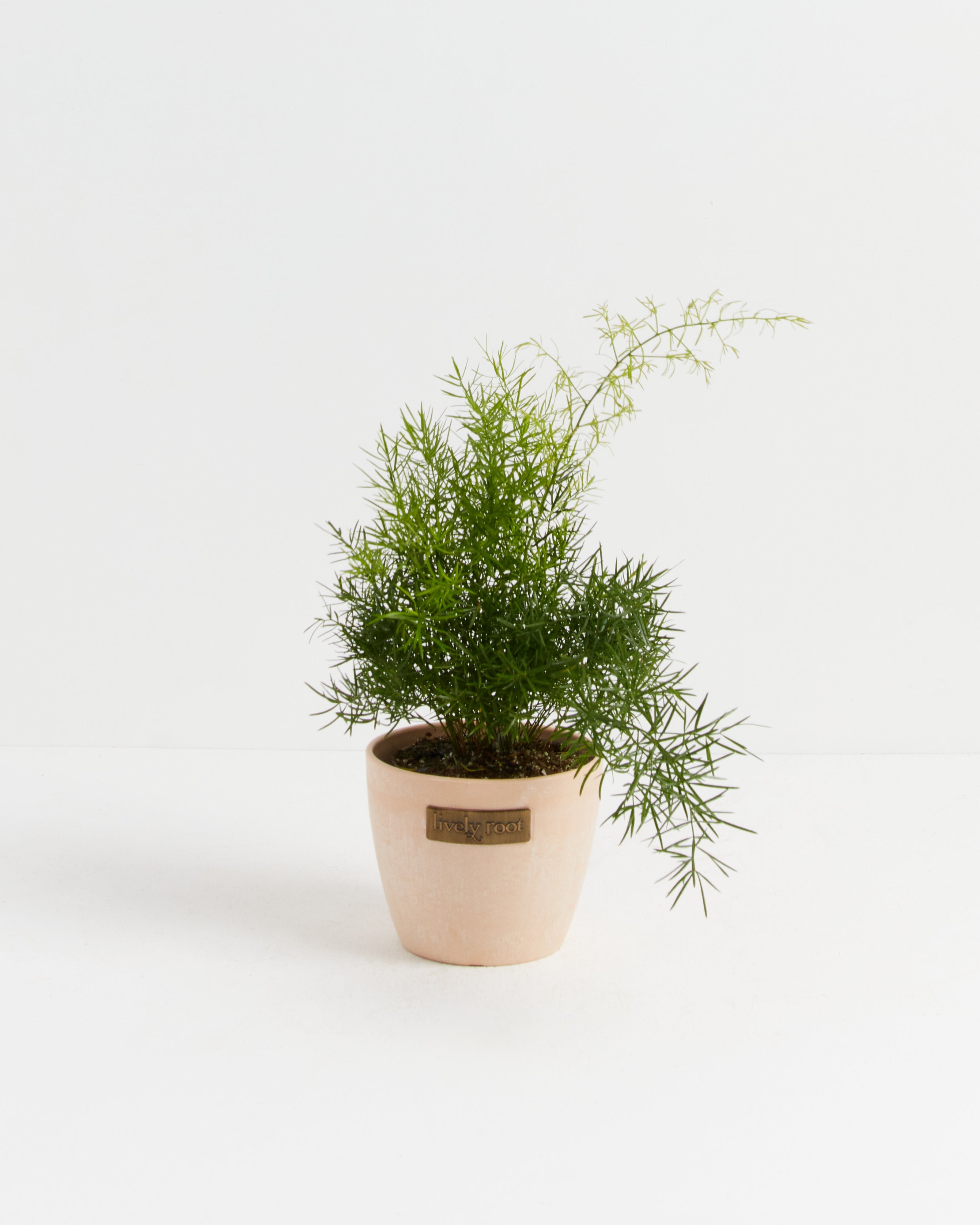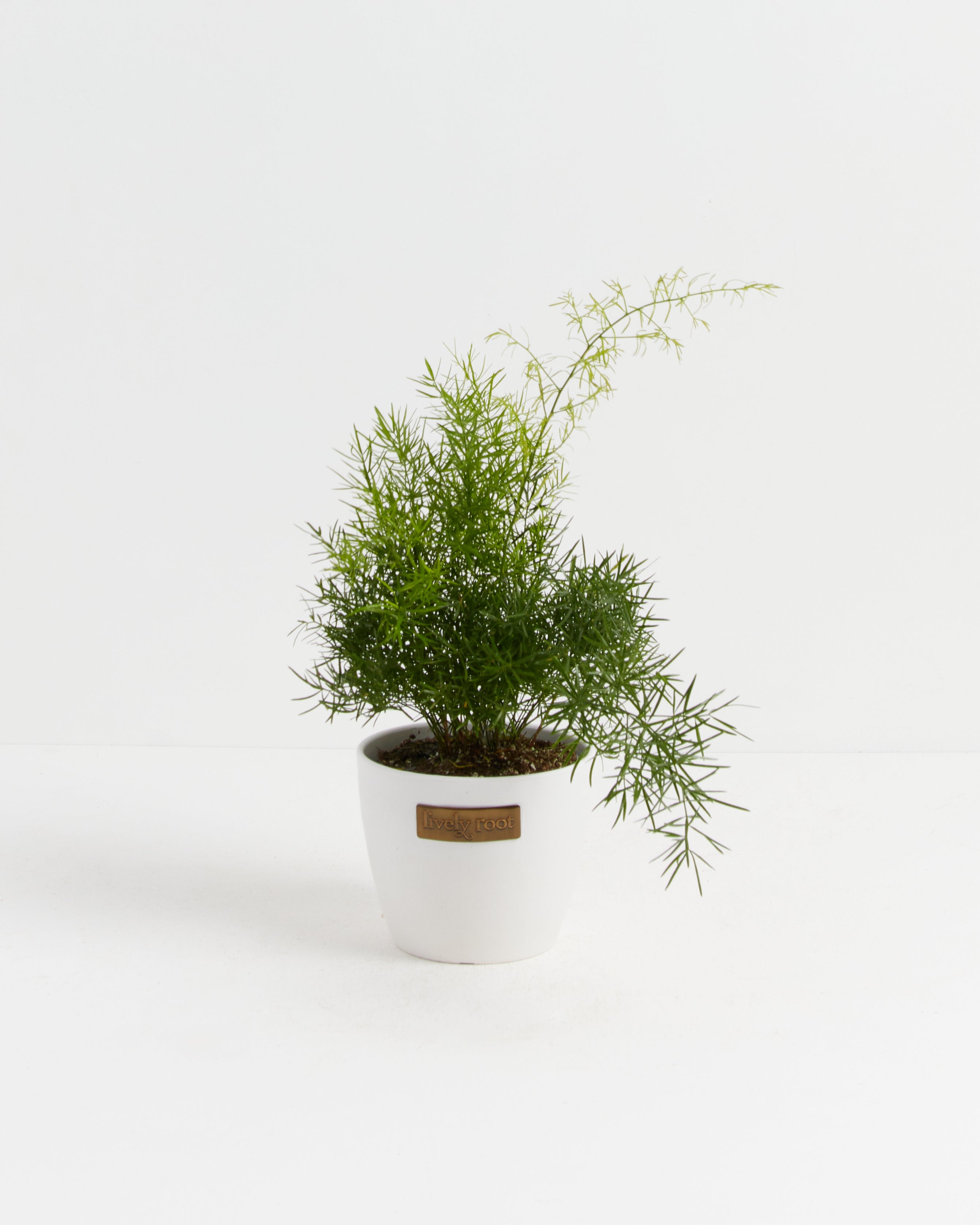 The Asparagus Densiflorus 'Sprengeri'' (Asparagus Fern) has arching fronds that resemble a bottle-brush. Their needle-like cladodes (segments of a stem) function like leaves—an elegant addition to your hanging basket or tabletop collection.