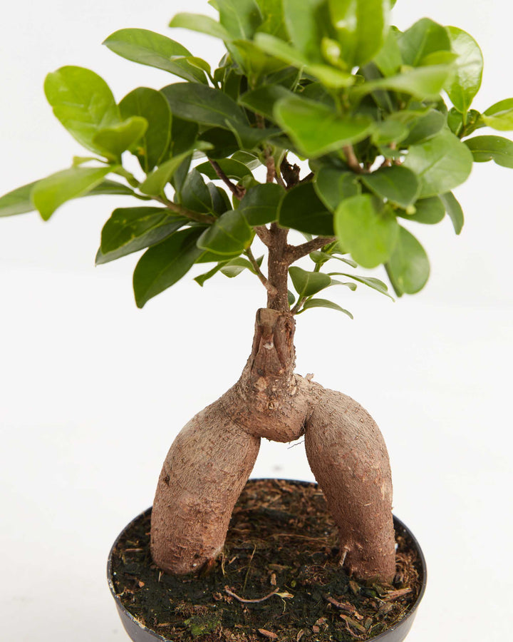 Pruning in the spring or summer is an essential part of Ficus Ginseng care. You can easily shape this plant’s thick foliage into the desired form by pruning the tips regularly. Trim any offshoots on the trunk to keep its unique shape. Shower the foliage to remove dust or use a small brush to dust the trunk.