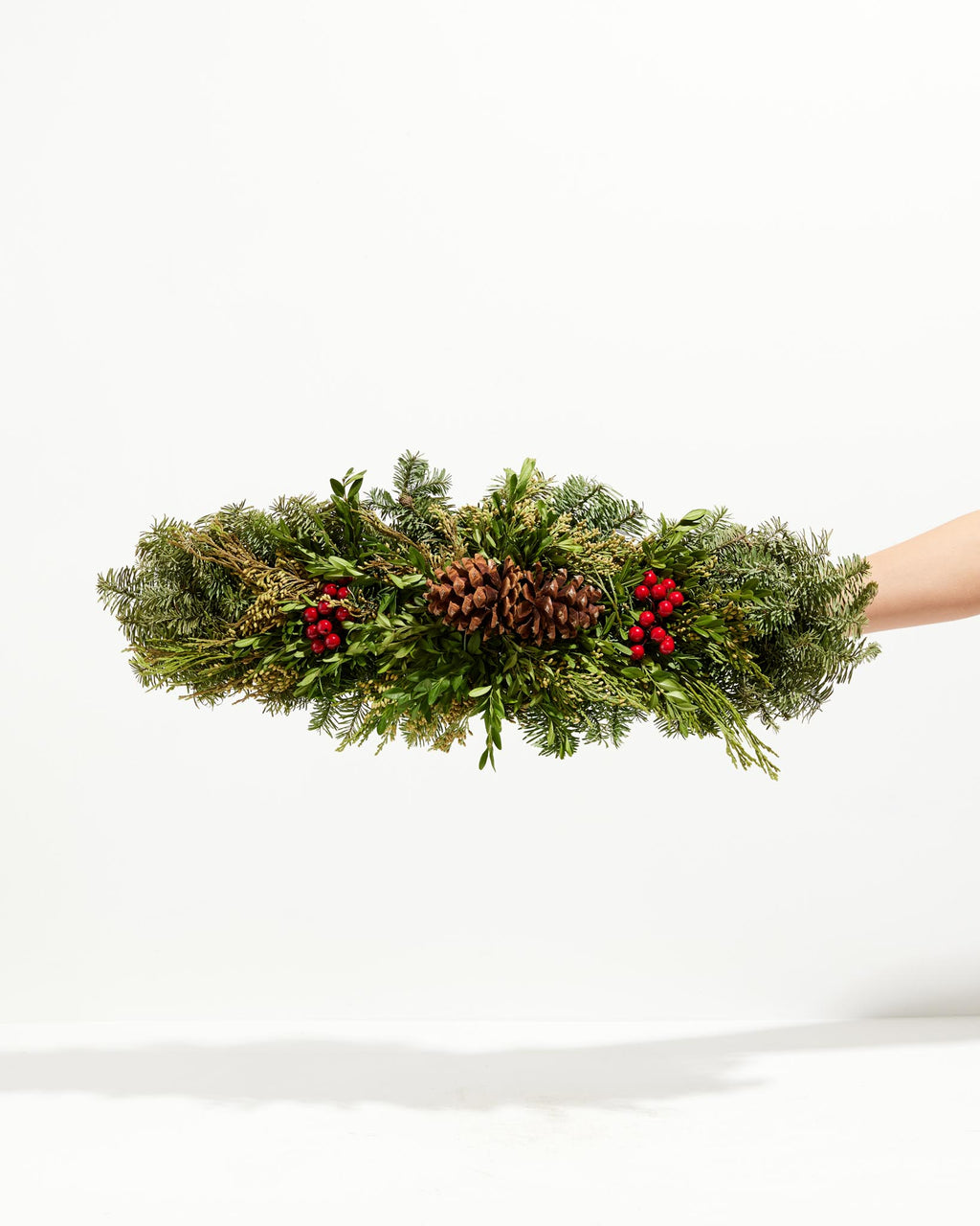 These hand-made, live wreaths, garlands, and other generous holiday decor are filled with noble fir, incense cedar, juniper, Oregon pine cones & faux red berries. They will bring happiness to your home for up to 8 weeks with occasional spritzing.