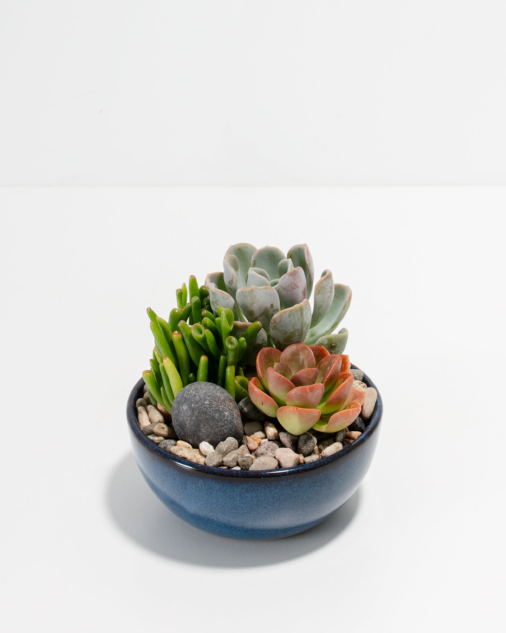 These gardens of petite succulents are perfect for sprucing up your tablescapes or sunny windowsill. It's always a party with three assorted easy-care succulents planted together in a beautiful glazed ceramic pot. Perfectly giftable, perfectly keepable.