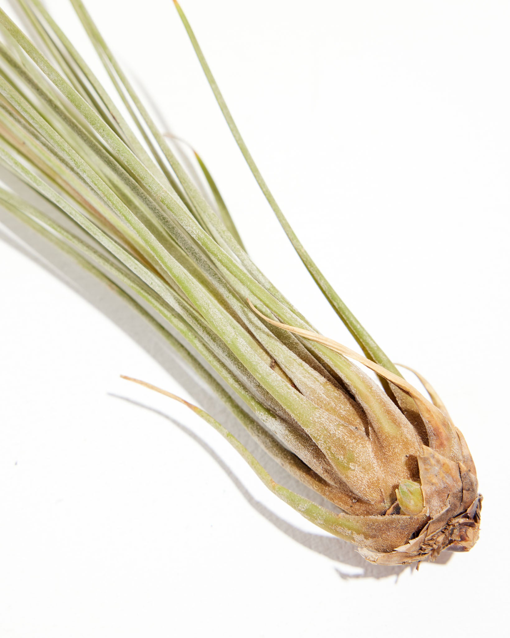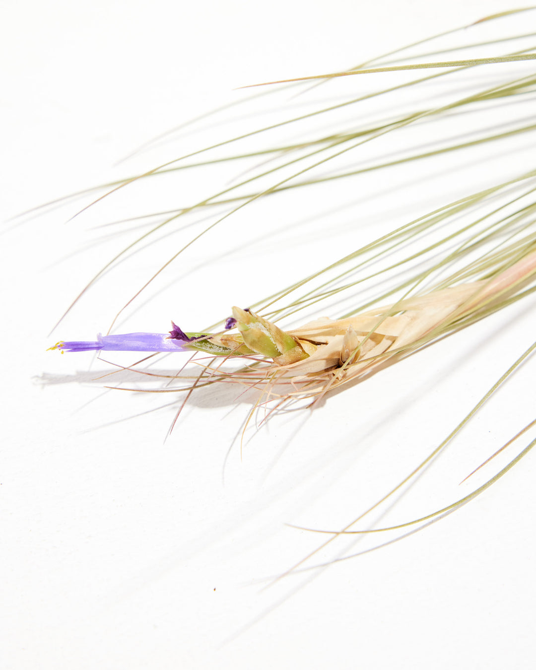 The air plant (Tillandsia Juncea) reminds us of a mini clump of grass by the seashore on a breeze-free day in July. His greenish-silver leaves stand straight up and have a clean, modern look. Display this one where you can enjoy the vertical lines with his own little thorn to perch himself! When he flowers, he puts out shades of dark purple to lilac tubular petals up to 1.5 inches long. Eventually, he will grow up to 20 inches tall and 8 inches across while making baby tillies along the way.