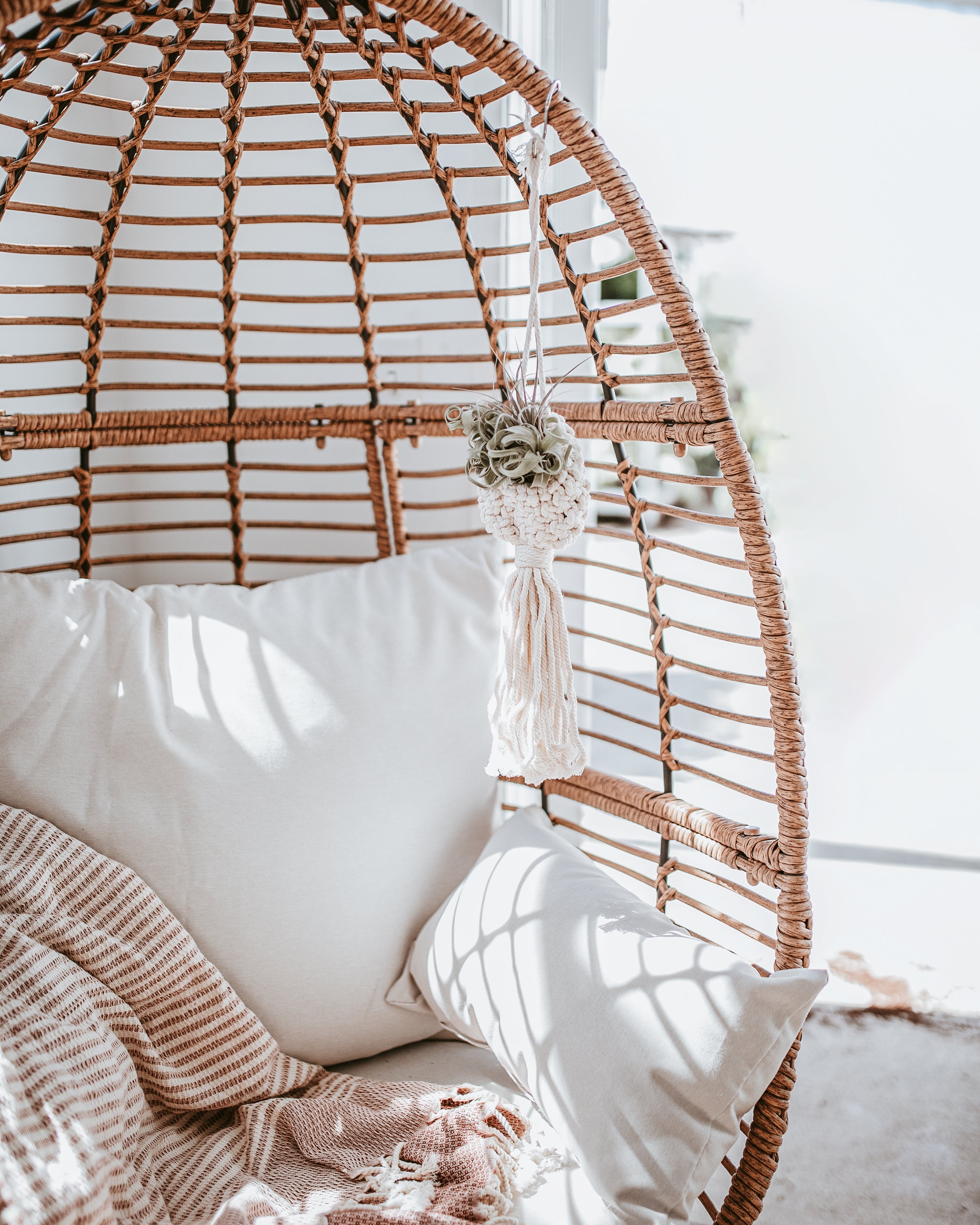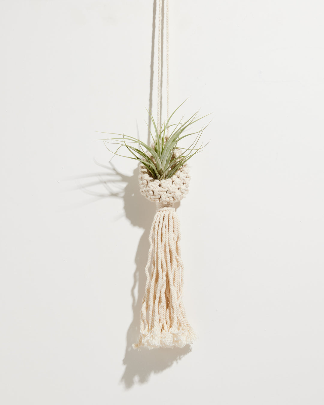 Need a home for your cutesy air plant? We have just the place for your air plant friend to HANG! This macrame ornament is the perfect accessory to hang anywhere in your home to give your air plant lots of light and add green to your space.