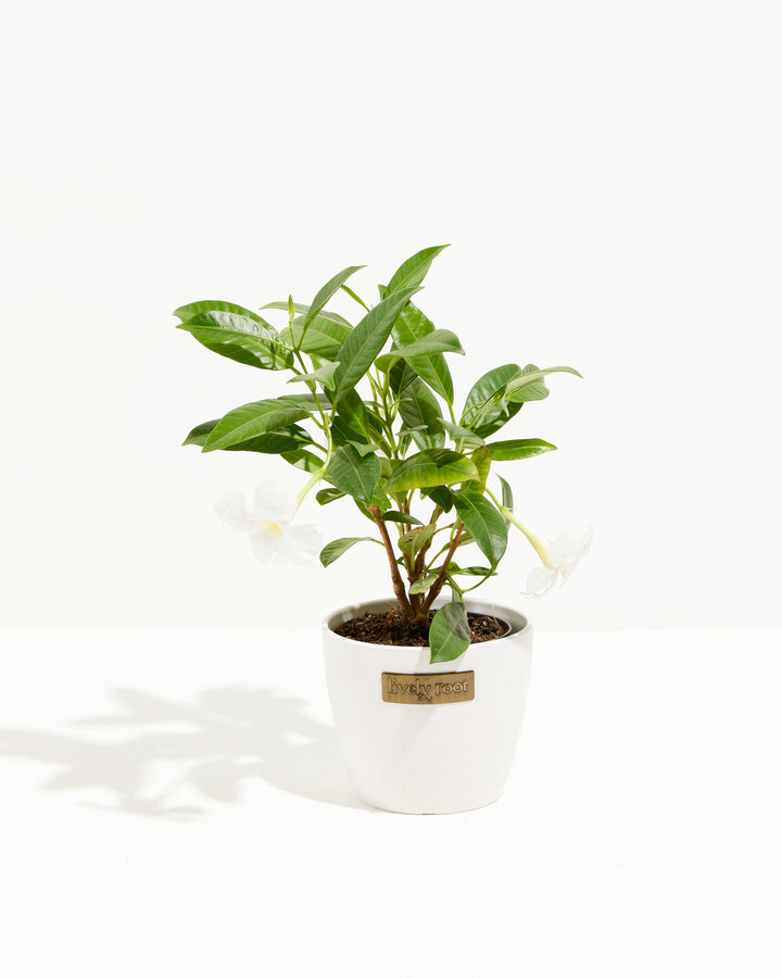 Water your plant a couple of days before transplanting. After receiving the Mandevilla, let them acclimate to their new environment for a couple of weeks before transplanting. Use a 2 inches bigger pot for a patio. Place a piece of screening at the bottom of the container over the drainage hole to secure the soil and allow to drain. Use a well-draining indoor potting mix with perlite to help with drainage. Add soil to the bottom to elevate the root ball. Lift the plant and release the roots against the existing planter. Use a clean knife or garden trowel to wedge between the grower pot and the soil to loosen. Inspect the root ball. Notice if there are any dead or rotting roots and trim them off with sterile pruners. If the plant is rootbound, loosen the roots to alleviate continued encircling. Ensure the plant is sitting about 1 inch below the edge of the pot to avoid water spillage. Add more soil and backfill around the sides by tamping down. Fill up to the soil line but not over. Water thoroughly, leaving the soil damp but not soggy. If settling occurs, add more soil. Water well to dampen the soil and let drain. Place them in full to part sun (4-8 hours).