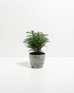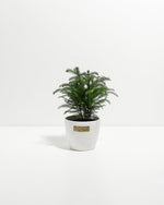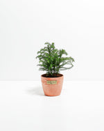 Our Norfolk Pine (Araucaria heterophylla) is a party waiting to happen! He's ready for all manner of decoration and costume. His upright trunk sits erect with his pyramidal shape. His evergreen form holds whorled, parallel branches (typically 5 branches per whorl) in layers. He will do double-duty for the sights of the season as well as a great houseplant throughout the year growing up to 3-5' over time!