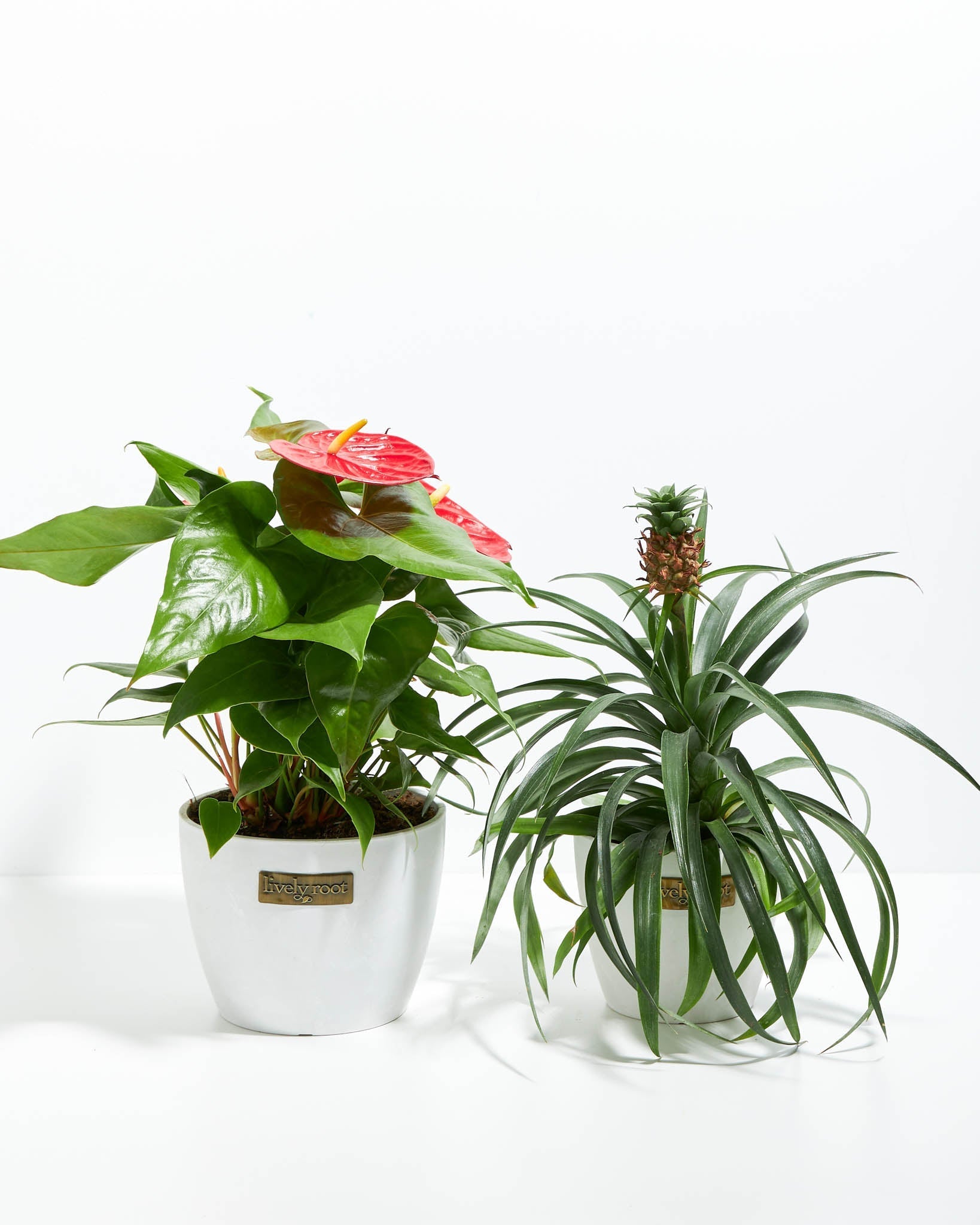 Does it get any cuter than a pineapple plant? We doubt it. Nestled among the spiky foliage, the tasty fruit — which symbolizes hospitality — can be harvested and eaten once they are ripe. Save the top, replant them, and wait for a new one to grow. One of the easiest tropical plants to care for, they just need lots of sunshine and a little water.