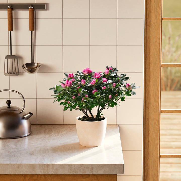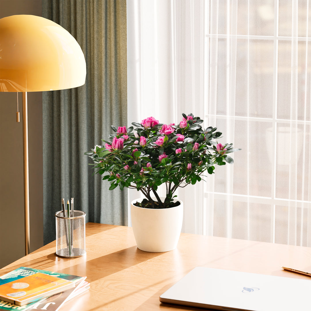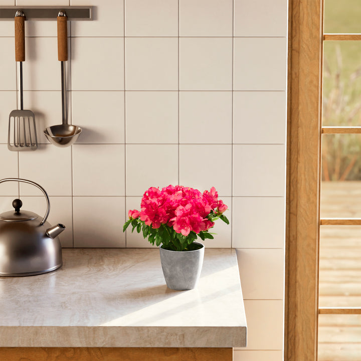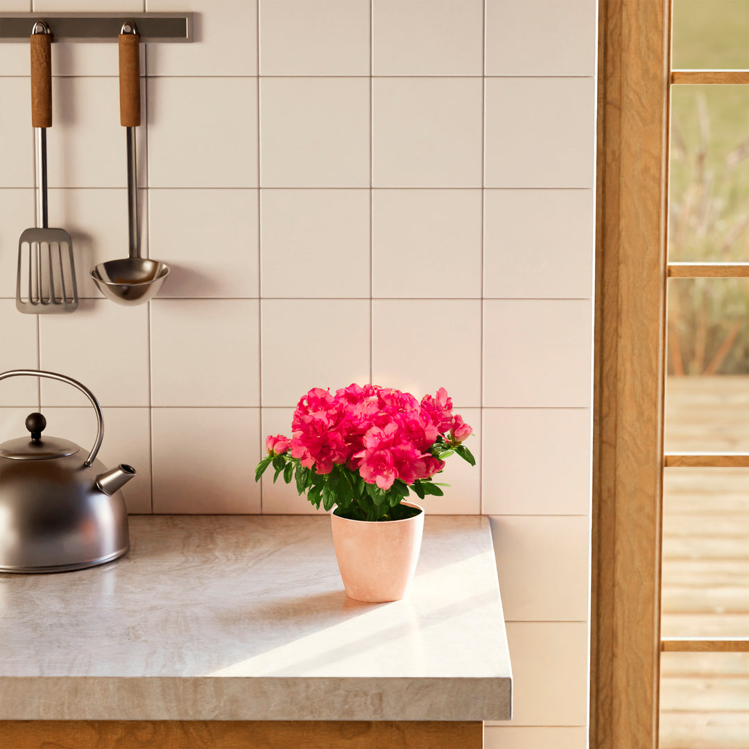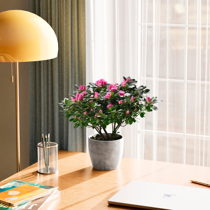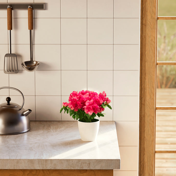 The Pink Blooming Azalea is a breathtaking flowering houseplant that puts on a spectacular show with masses of delicate, ruffled pink blooms. Long a symbol of elegance and beauty, it brings a burst of color and charm to any indoor setting. With the right care, this stunning plant can rebloom year after year, making it a cherished and rewarding addition to your home.