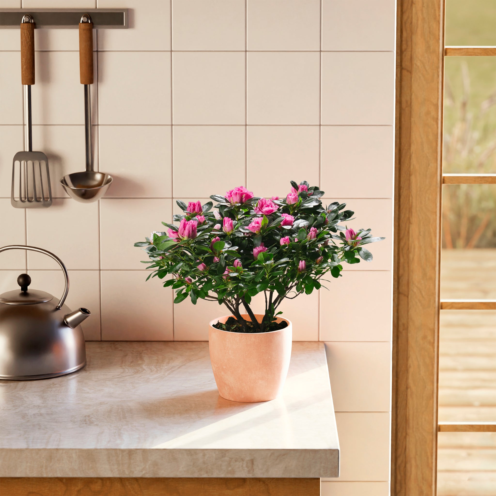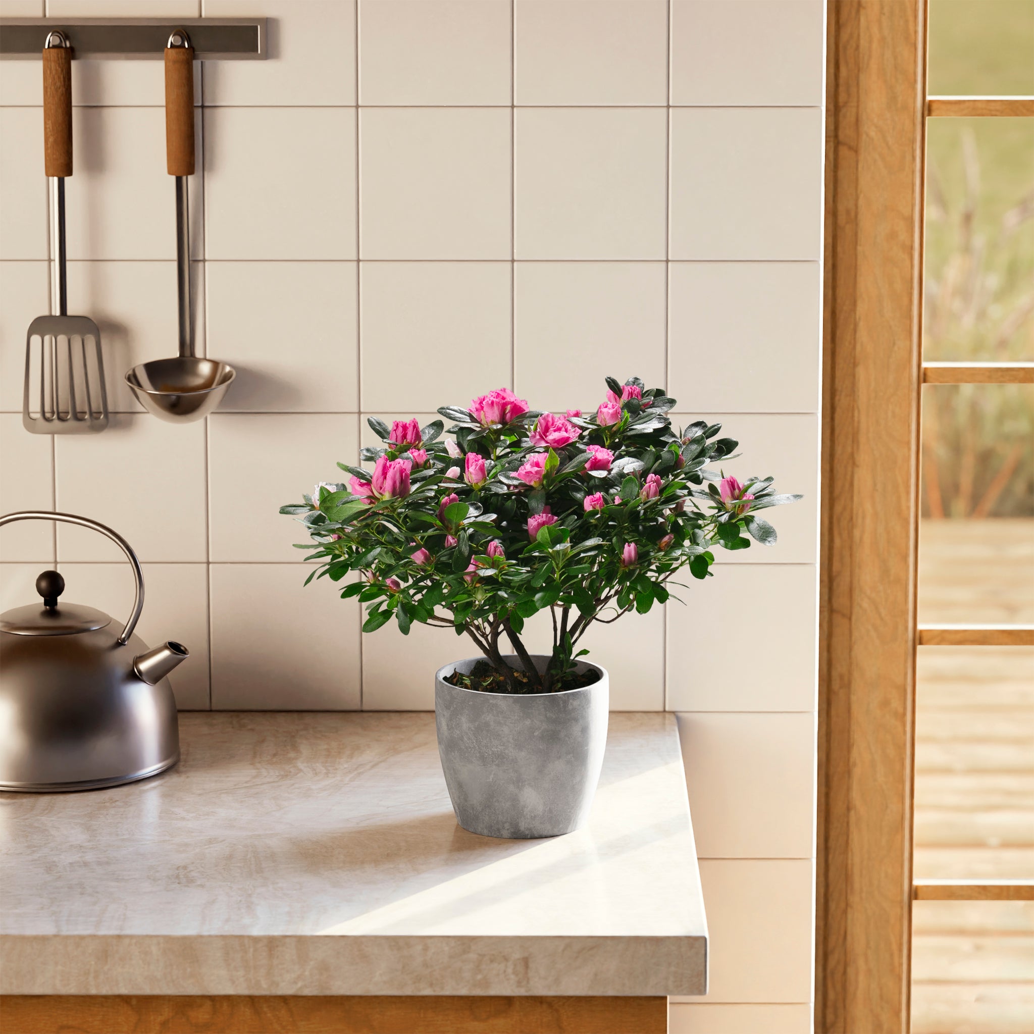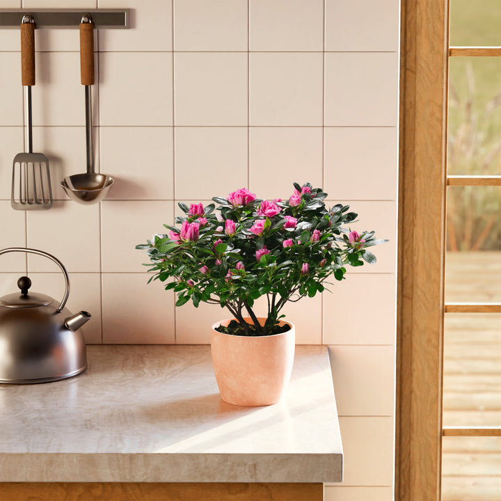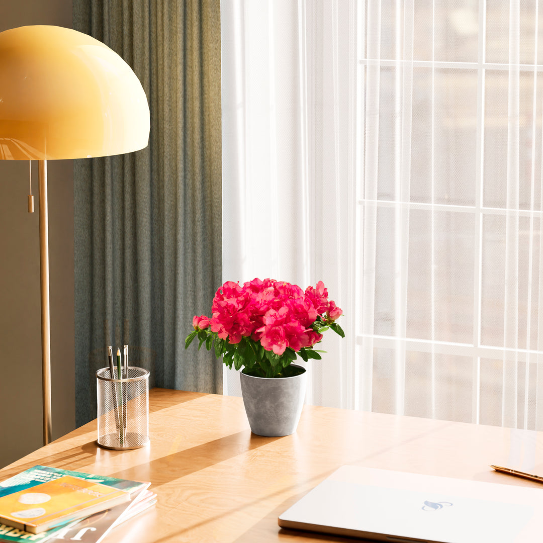 The Pink Blooming Azalea is a breathtaking flowering houseplant that puts on a spectacular show with masses of delicate, ruffled pink blooms. Long a symbol of elegance and beauty, it brings a burst of color and charm to any indoor setting. With the right care, this stunning plant can rebloom year after year, making it a cherished and rewarding addition to your home.