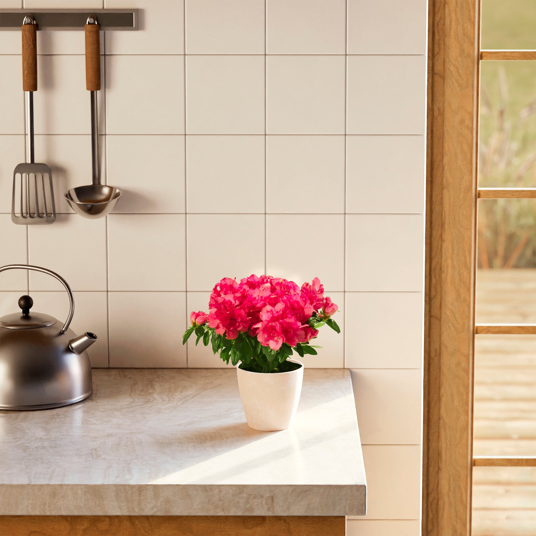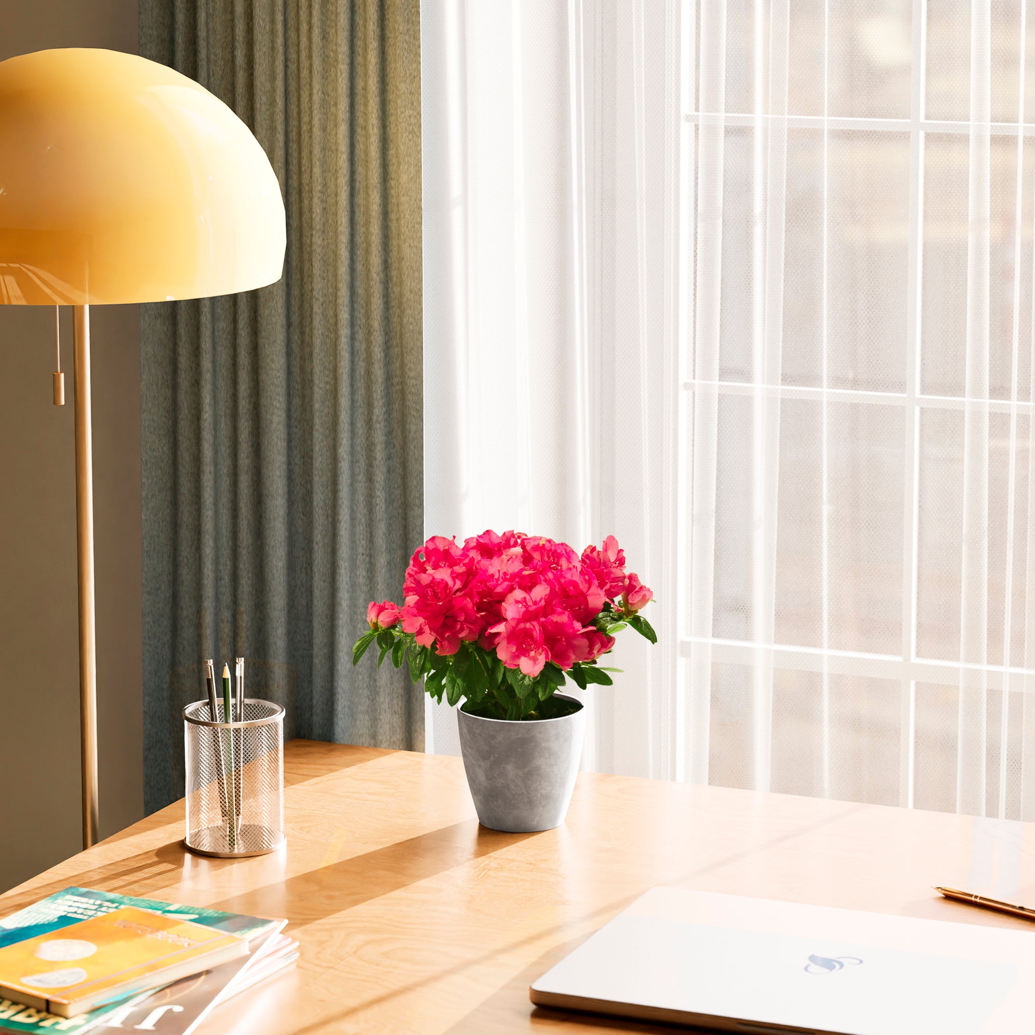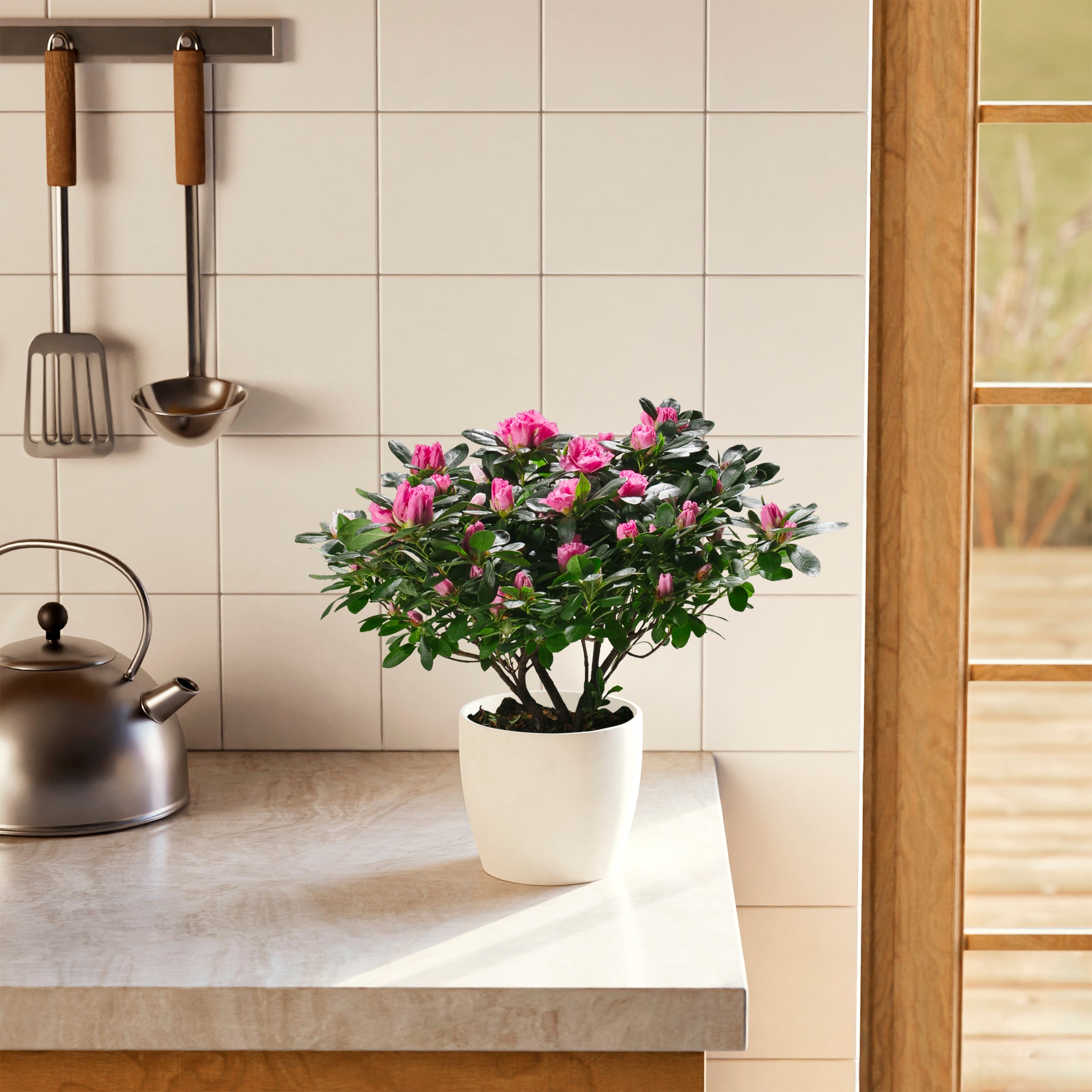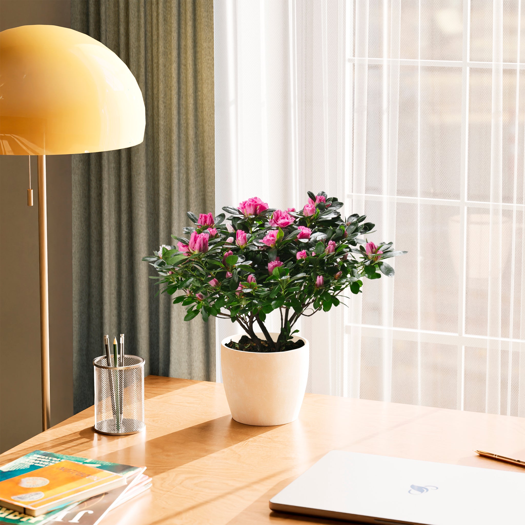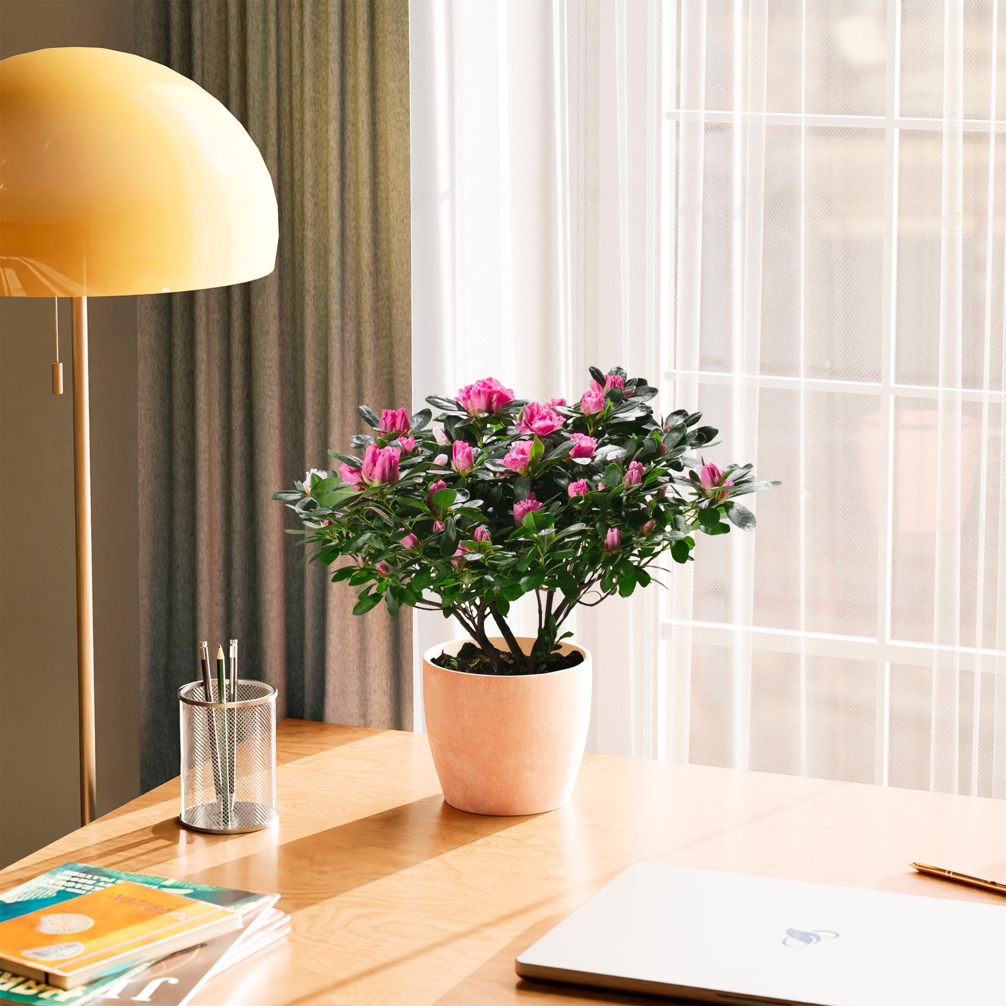 Azaleas are cool-temperature lovers and prefer notably cooler indoor conditions than most houseplants. Warmer temperatures shorten bloom time and can stress the plant. Avoid heat vents and sunny warm windowsills during bloom. A cool room or bright porch is ideal.