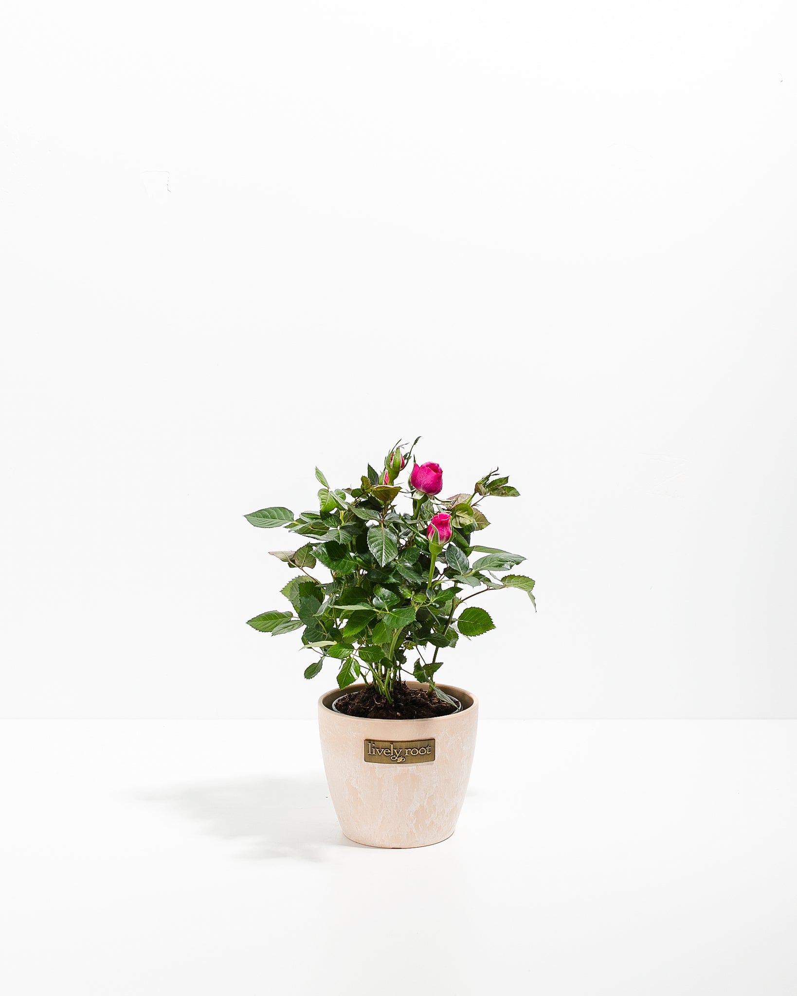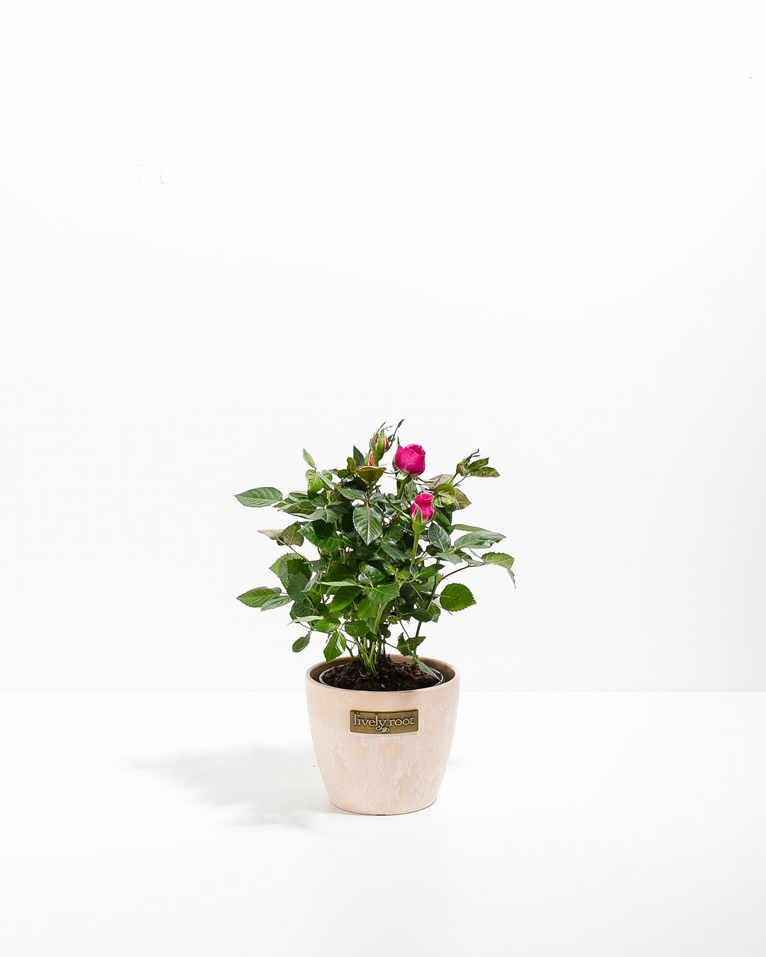 Keep the soil consistently moist but not soggy. Water the soil in the morning hours and do not get the leaves wet to avoid fungal issues. Do not let your rose get dry.