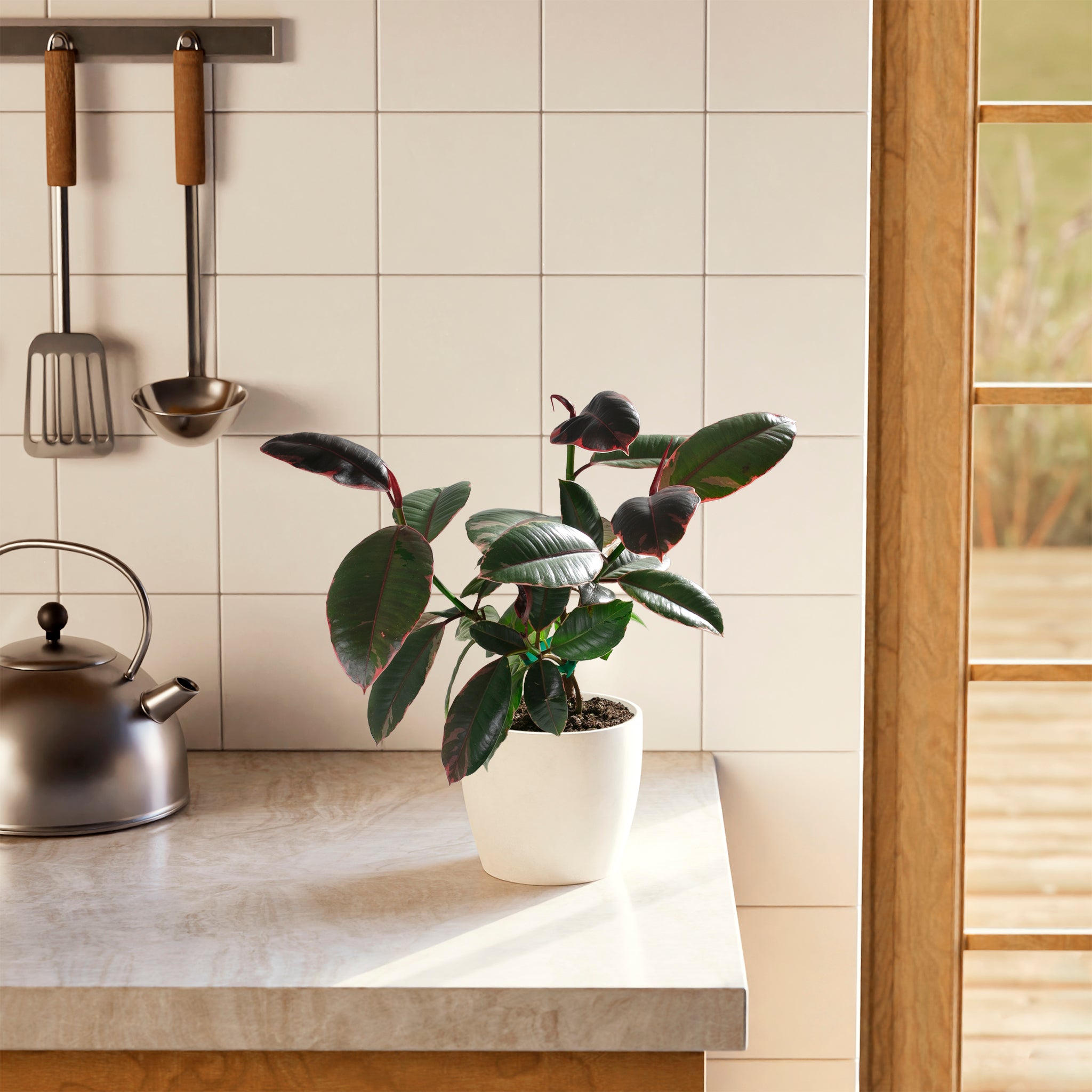 Enhance your space with the Ruby Rubber Tree (Ficus elastica 'Ruby'), a versatile indoor tree perfect for beginners and experienced plant lovers. Known for its ease of care, this rubber tree plant can grow up to 8 feet indoors, making it a prime choice for those seeking a large, full-grown floor plant. The Ruby Rubber Tree is not just an attractive indoor tree; it also purifies the air, making it both a stylish and functional addition to any home or office.