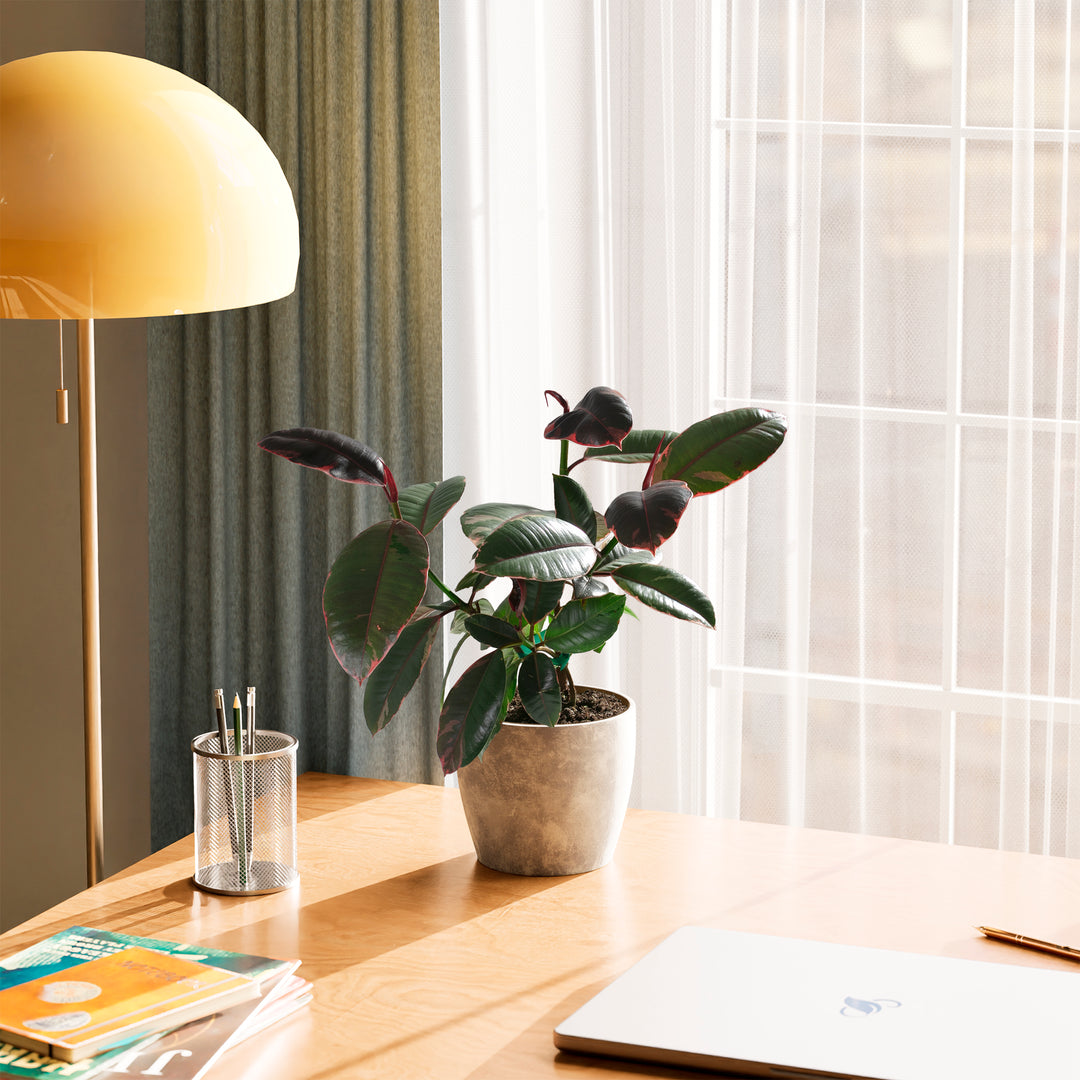 Keep your Ruby Rubber tree plant in a warm environment with temperatures between 65°F to 80°F (18°C to 27°C). It thrives in moderate to high humidity therefore, occasional misting will benefit your plant.