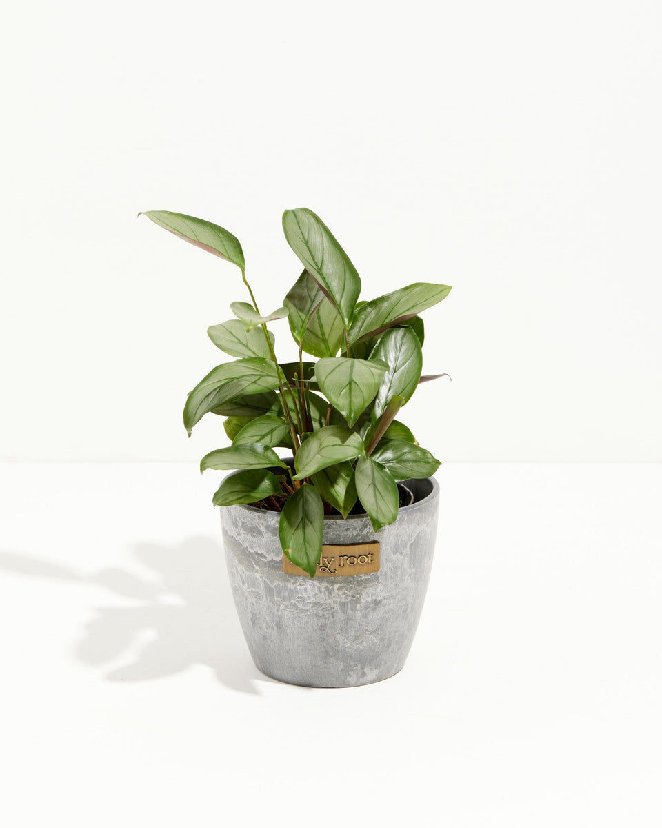 Use filtered, bottled, or tap water sitting 24 hours to release the chemicals and water enough that the water discharges out of the drainage holes. Once the water is fully drained, replace it into the cache or decorative pot. Avoid overwatering as it can suffer from root rot. During winter months, it needs only watered every couple of months. Keep the soil onsitently moist at a #5 on the moisture meter but not water logged.