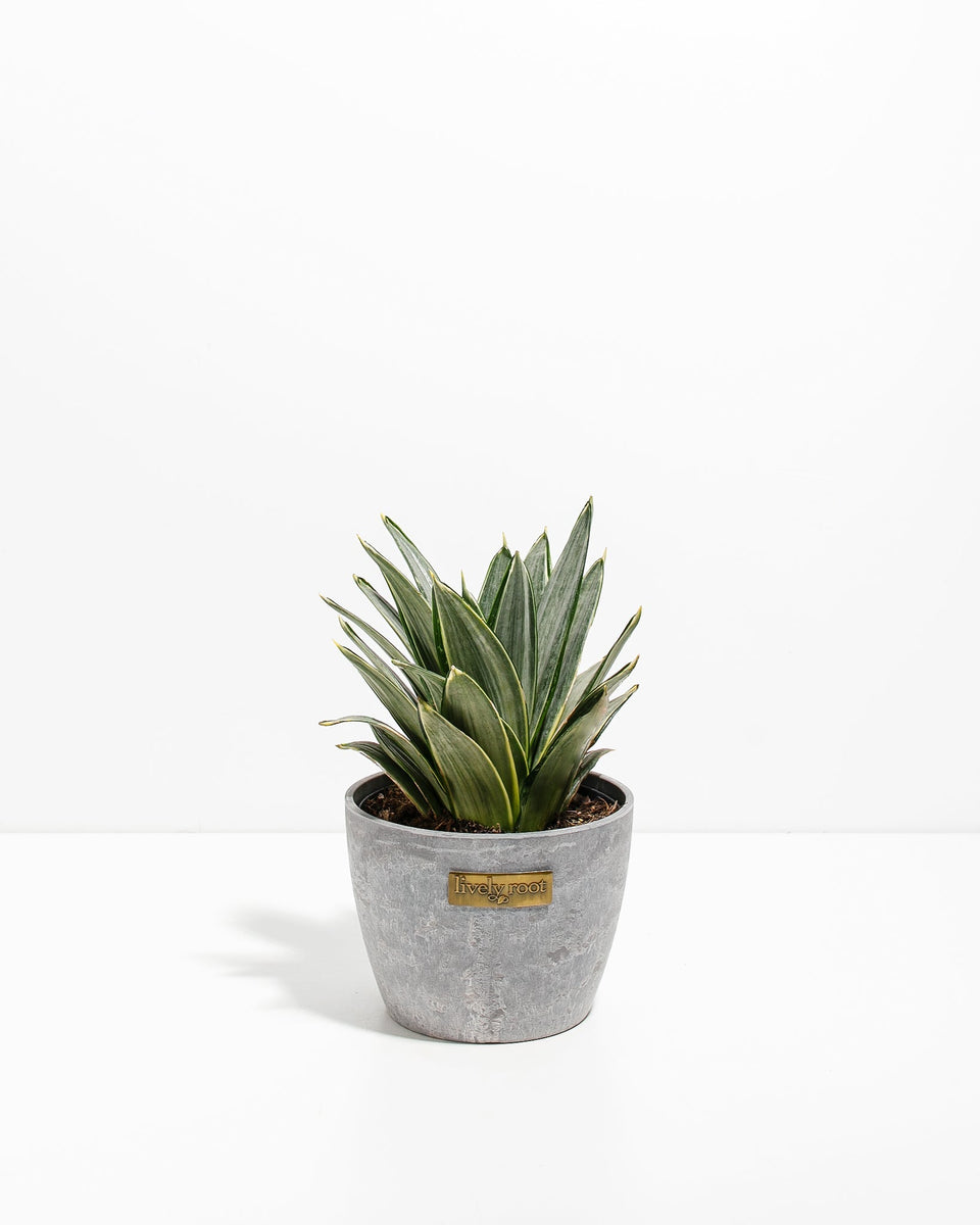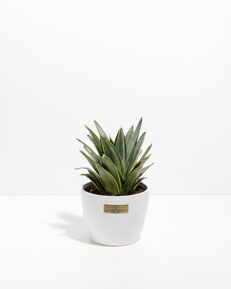 This silver leafed, short variety of snake plant is sure to be a stunner! Extremely adaptable and tough as nails when it comes to care, this is one of the best (and easiest) plants to gift because they look good anywhere and is happy even in the lowest of light. Extra points for air purification, too.