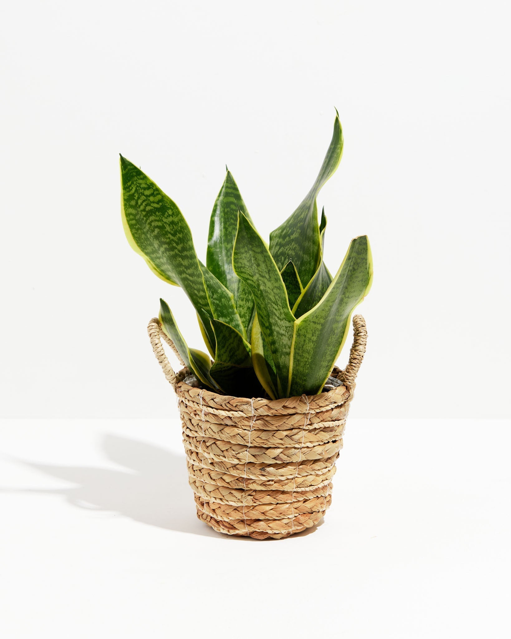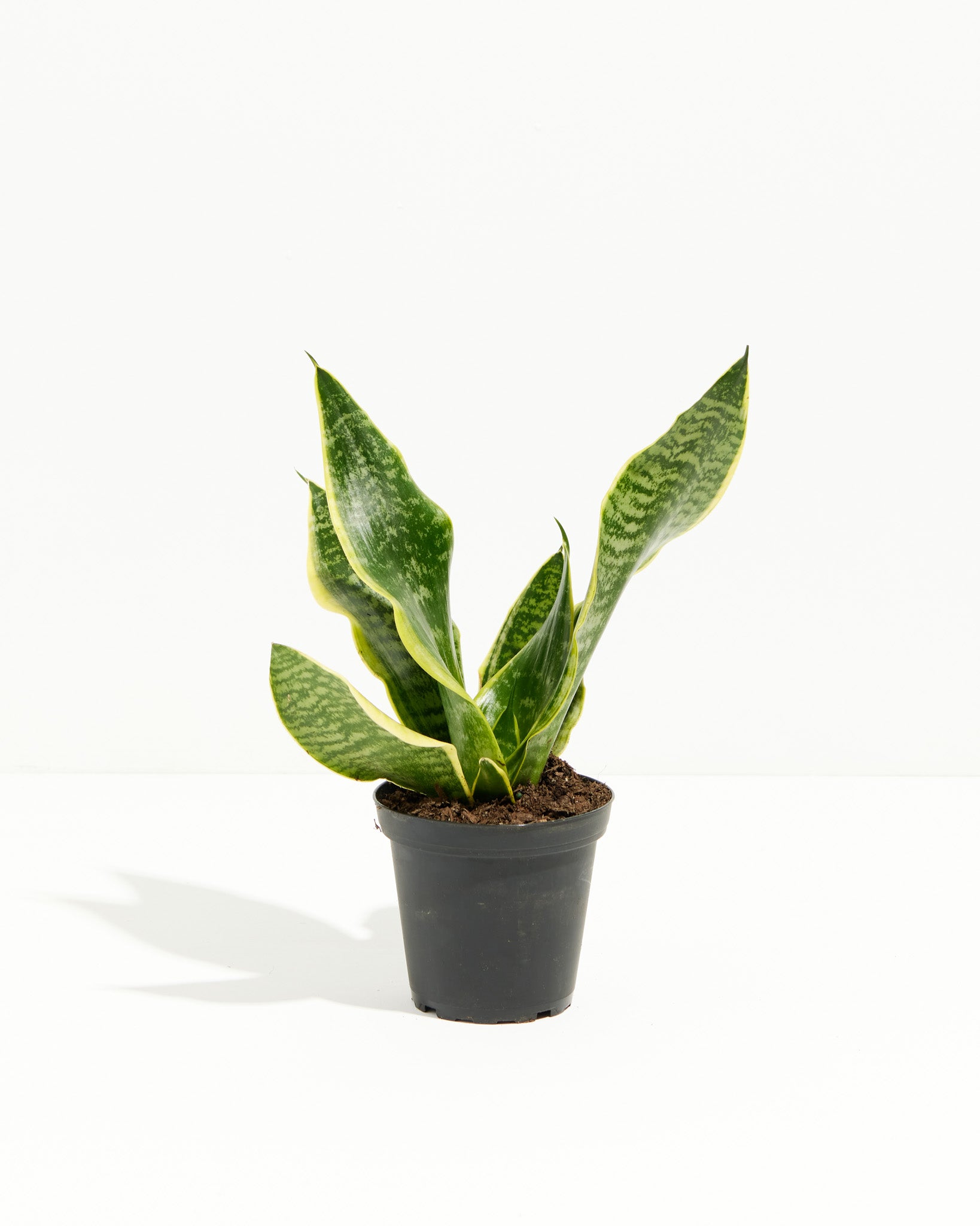A little shorter and a little broader, this Snake Plant still has the beautiful light green leaves with mottled silver but adds a bit of extra gold around the edges for good measure. Extremely adaptable and tough as nails when it comes to care, this is one of the best (and easiest) plants to gift because they look good anywhere and is happy even in the lowest of light. Extra points for air purification, too.