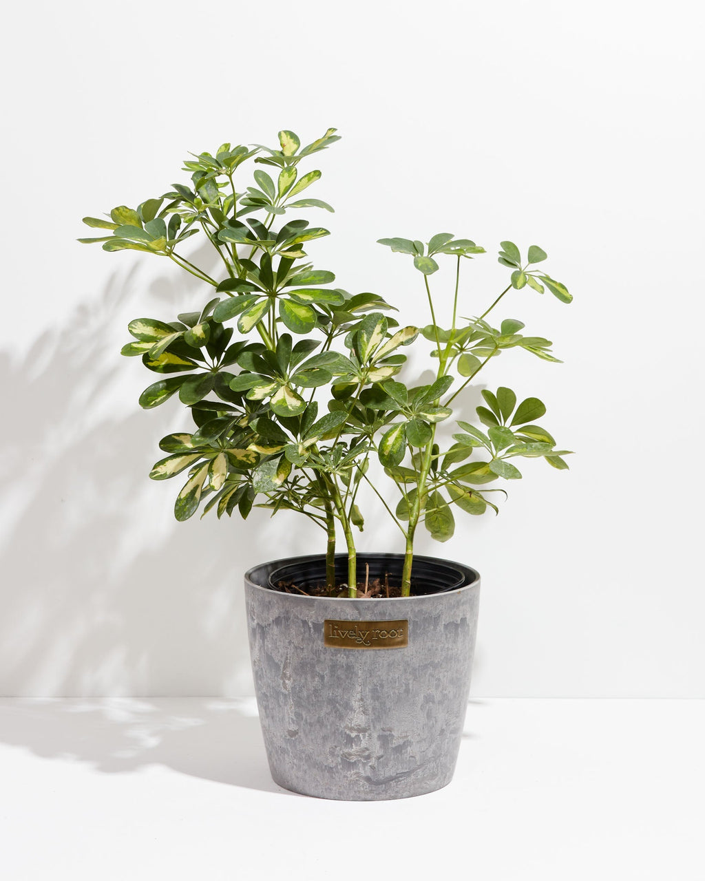 The Umbrella Tree is one of the fastest-growing plants, popular for its lush foliage and unique appearance. Add some height to your indoor urban jungle with our stunning variegated Schefflera. It is one of our favorite beginner plants, ideal for sunroom decor or the patio in the summer, as the Umbrella plant thrives in warm temperatures.