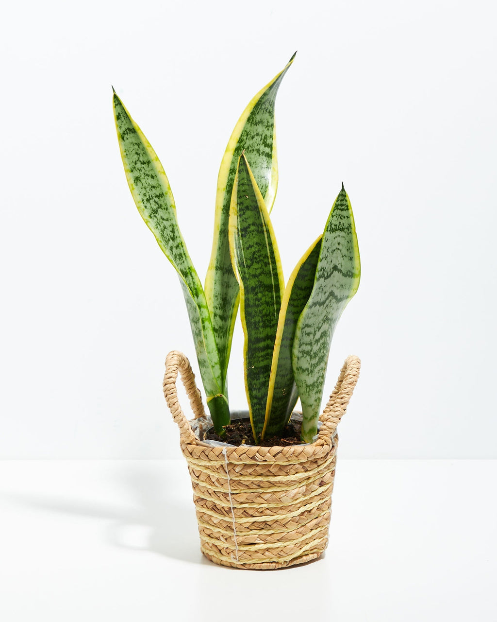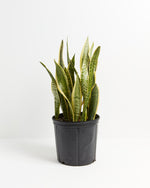 The Sansevieria Laurentii snake plant is vibrant and has an eye-catching leaf pattern. It will look amazing when grouped with other plants with bright green foliage.