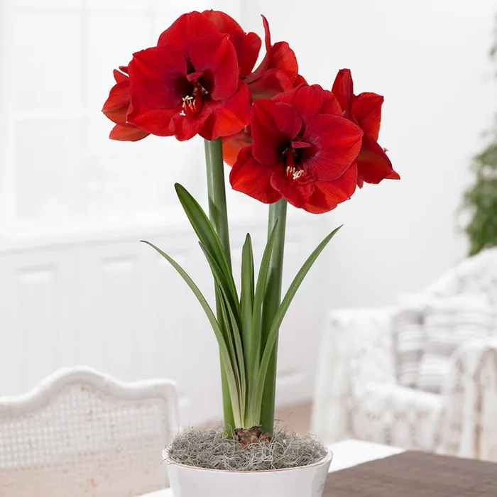 The Red Lion Amaryllys is an award winner for good reason. They are an absolute KNOCKOUT with generous, voluptuous, rich red flowers. They have extremely glamorous with audacious, sensual tropical blooms. They bloom easily in no time and will be the centerpiece of your table or your garden.