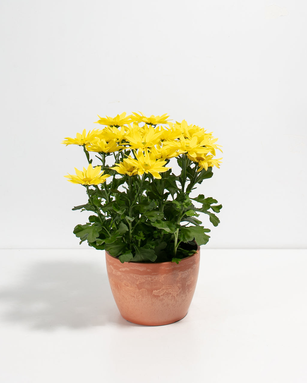 Mums love plenty of light! Outdoors, they flourish in full sun. Indoors, place them near a bright window where they can get at least 5–6 hours of light daily to maintain healthy blooms and compact growth.