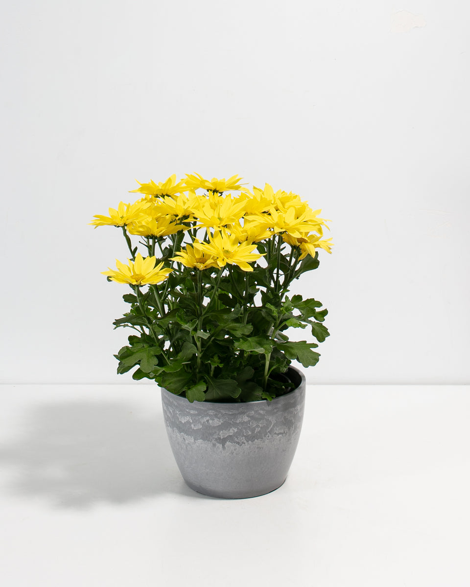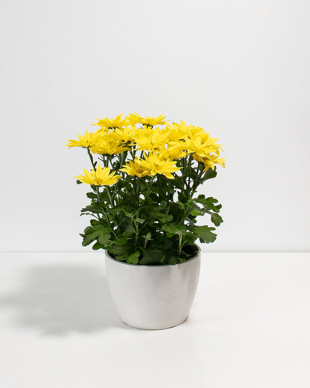This lush, full-blooming potted Yellow Chrysanthemum delivers a stunning pop of color, perfect for patios, porches, or indoors! Easy to care for and rich in cheerful blooms. Perfect gift for those special people in your life.