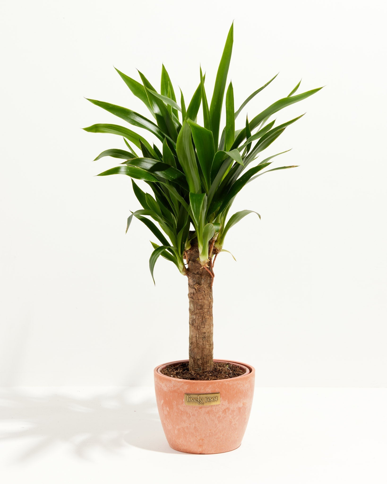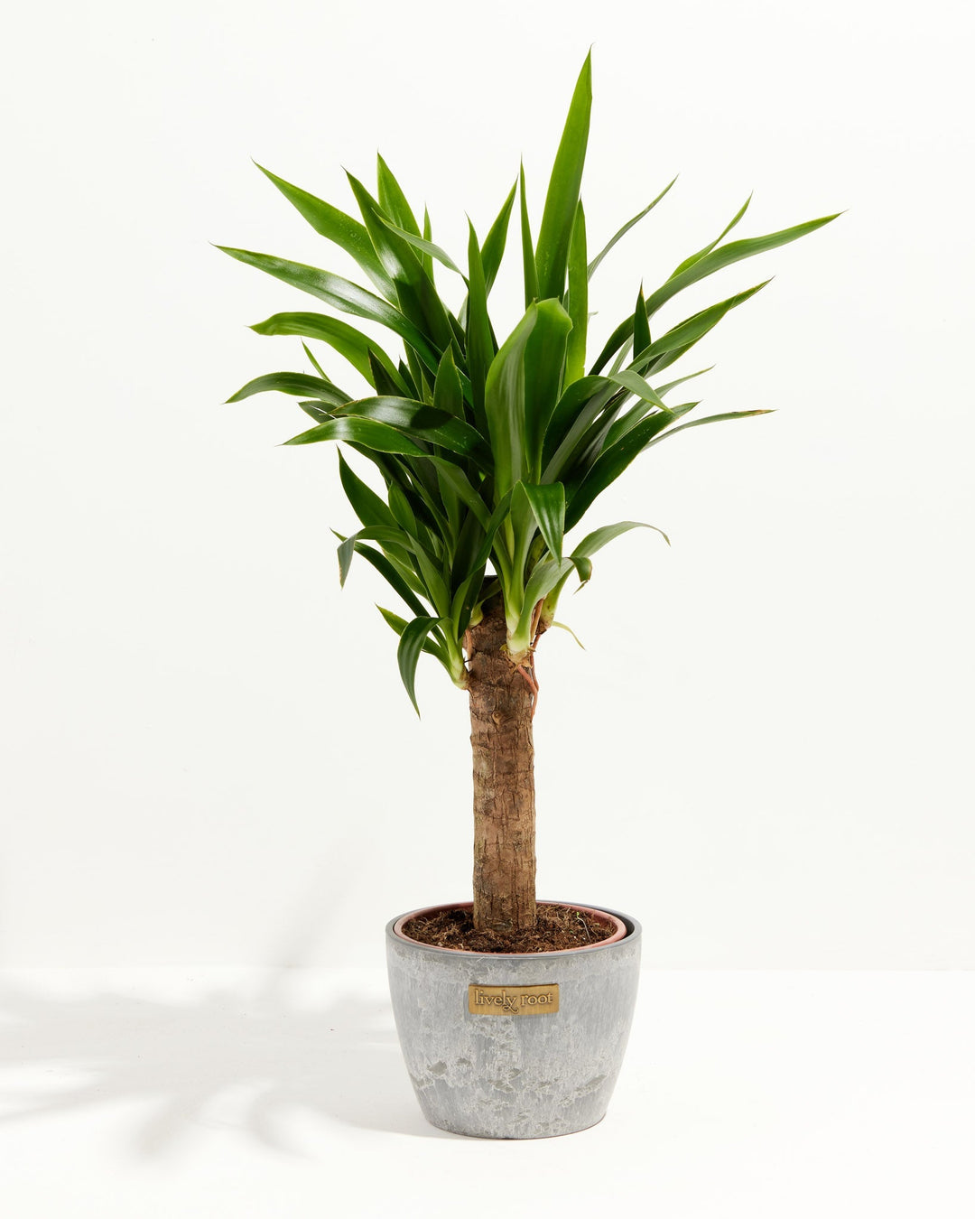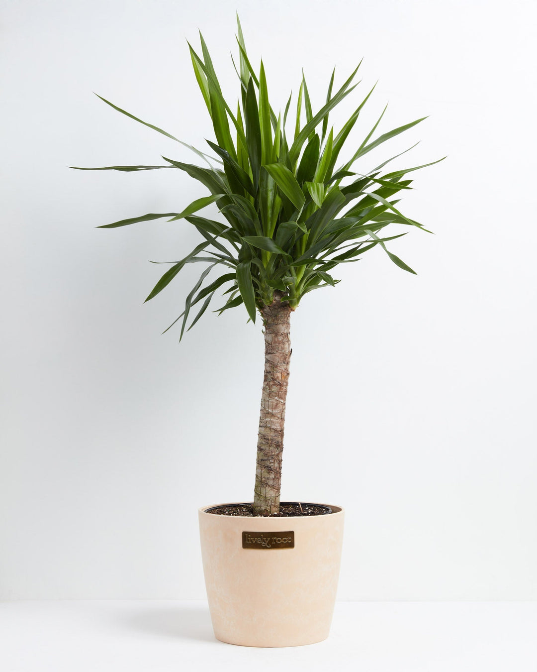 Striking and easy to care for, the Yucca Cane tree is an awesome choice for any first-time (or uncertain) plant parent. Since it's native to arid regions, the Yucca Cane Plant prefers soil with excellent drainage. If you notice "pups" growing down at the base of your Yucca Cane, wait until they've matured a bit and then transplant them to their own pot to create your Yucca Cane family.
